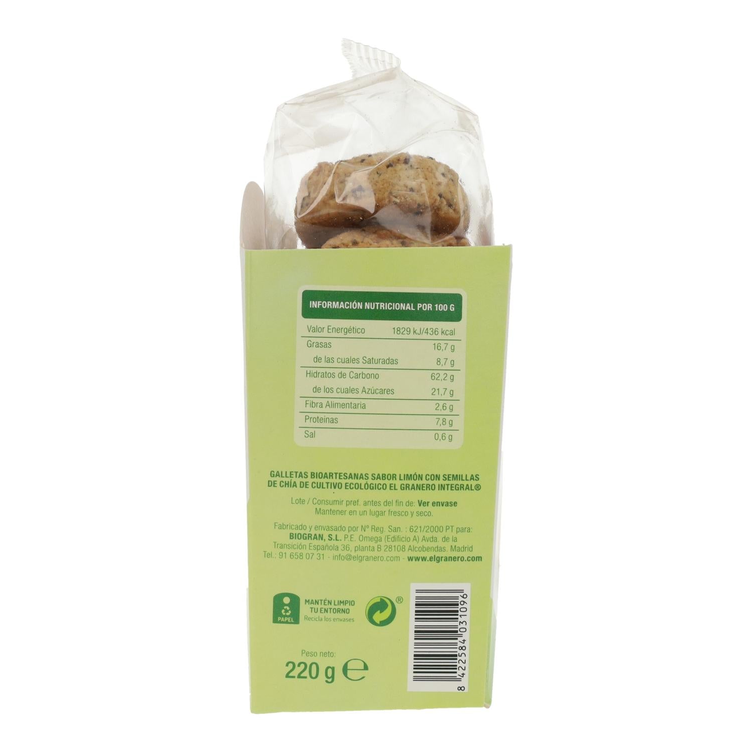 Toda la información sobre "Galletas Artesanas sabor Limón con Chía Bio El Granero, 220 g"