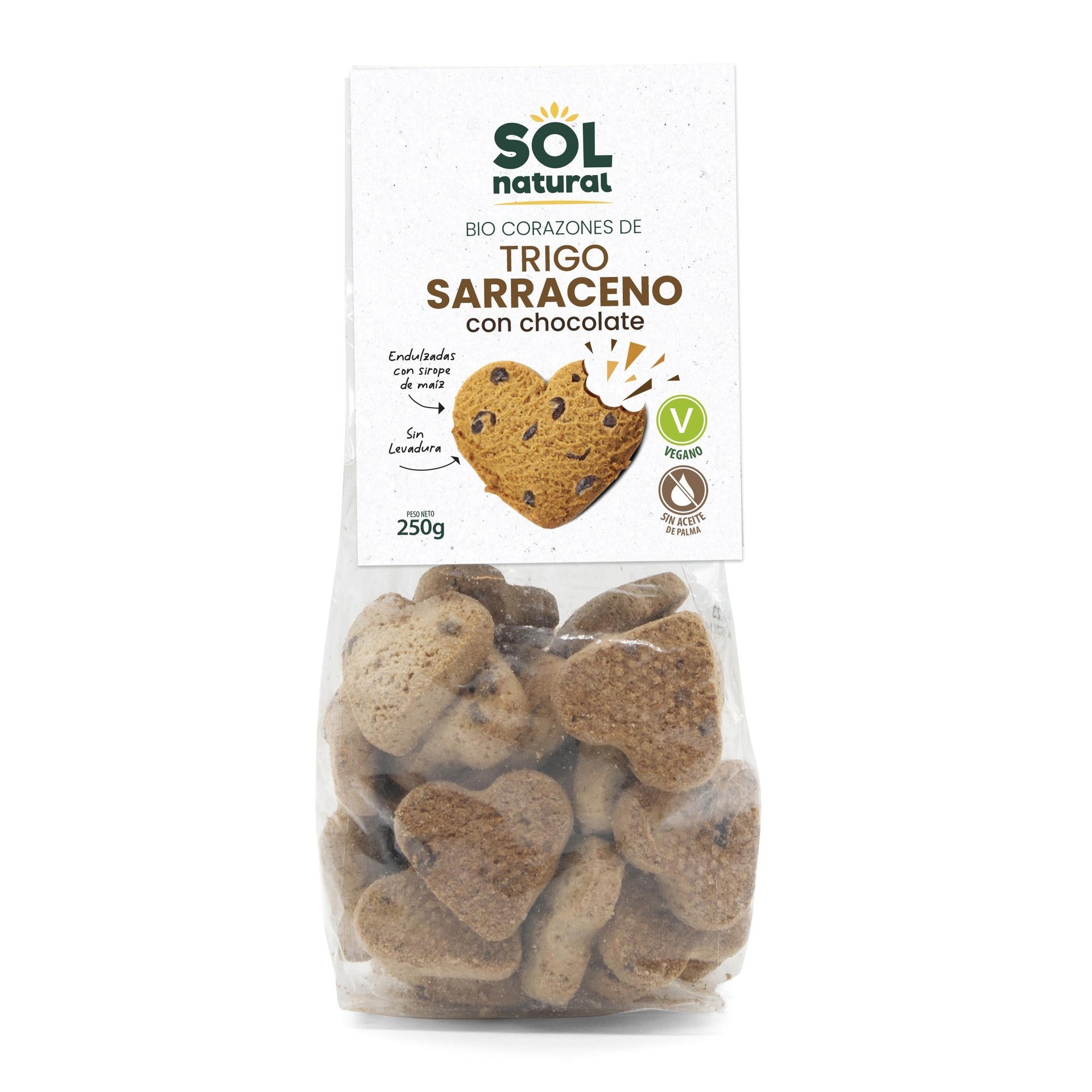 Toda la información sobre "Galletas Corazones de trigo sarraceno con chips de chocolate bio Sol Natural 250 g"