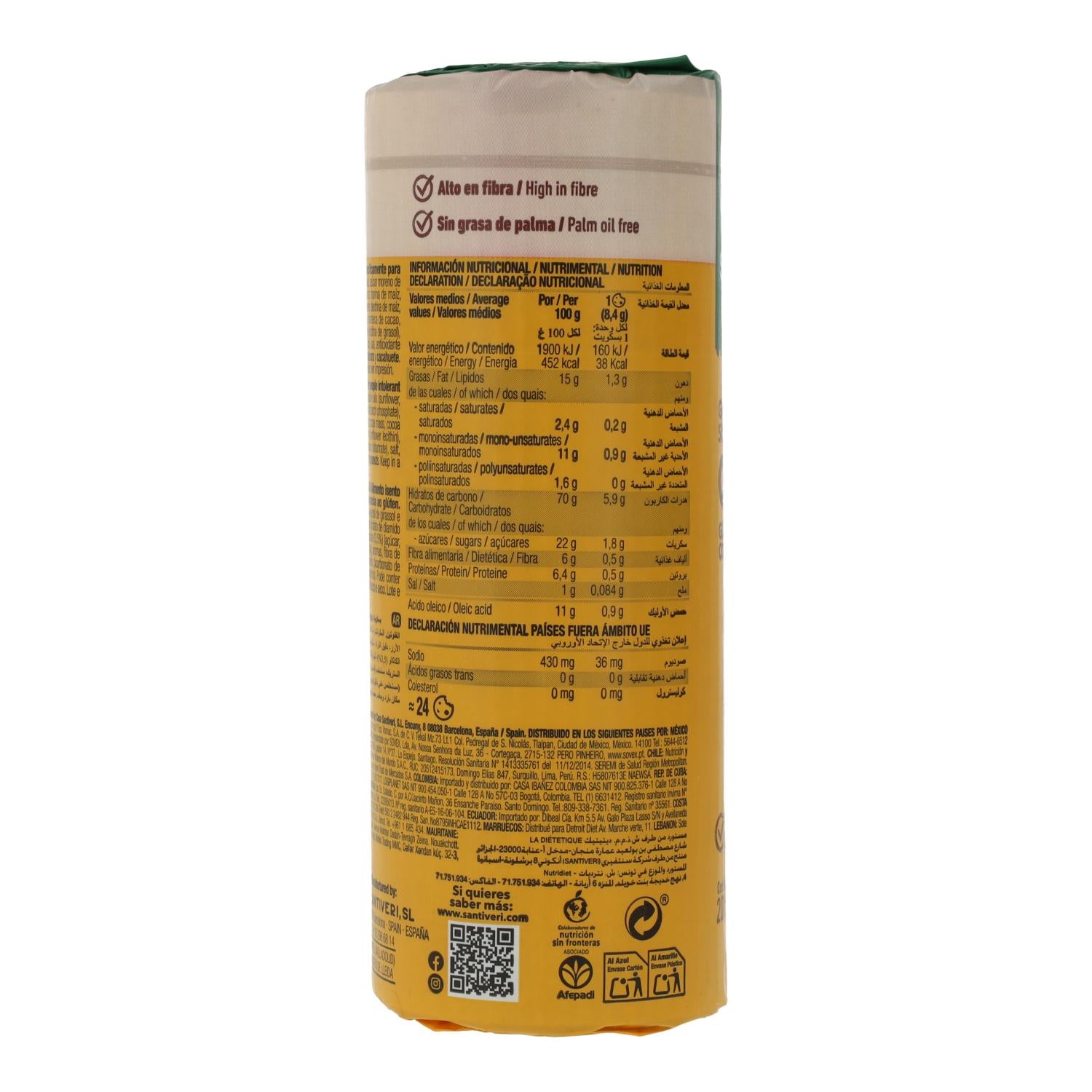 Toda la información sobre "Galletas sabor Cacao Sin Gluten Santiveri Noglut 200 g"
