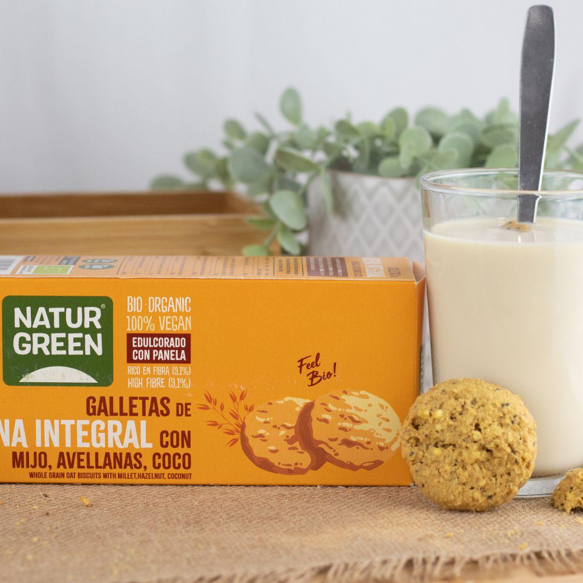 Toda la información sobre "Galletas Veganas de Avena Integral con Mijo, Avellanas y Coco Bio Naturgreen 140 g"