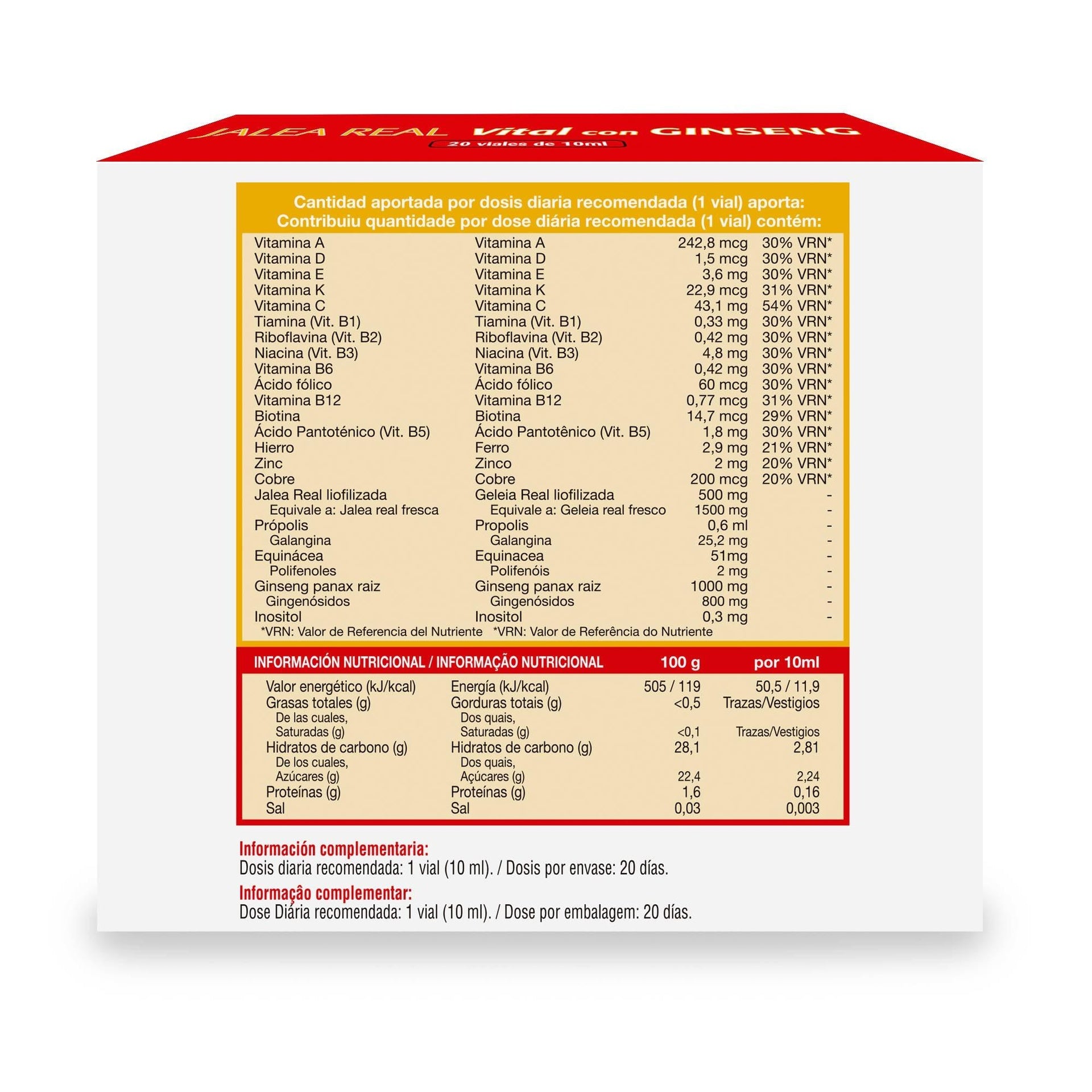 Toda la información sobre "GHF Jalea real vital con Ginseng 20 ampollas 10 ml"