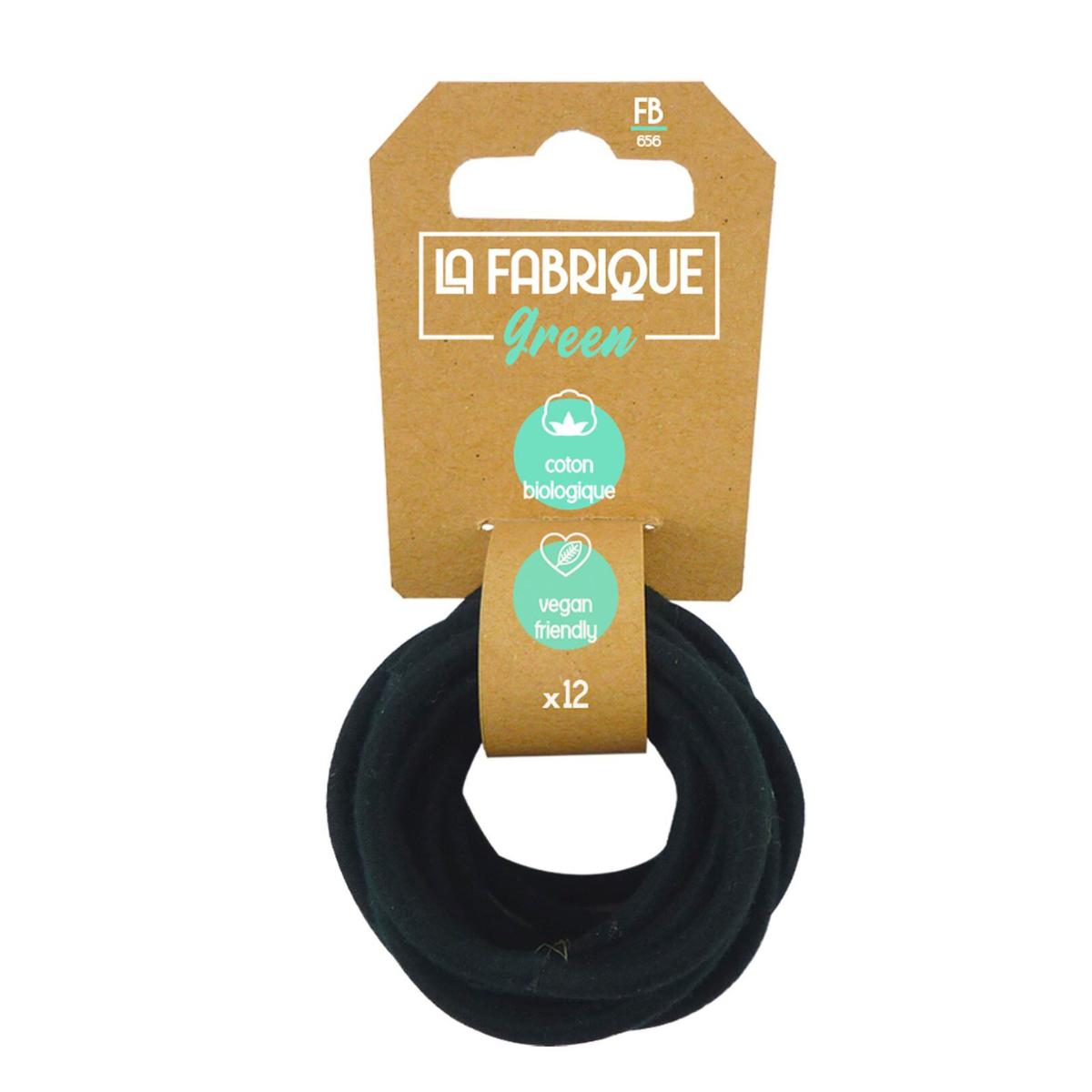 - 12 elásticos para el cabello de algodón bio sin metales de color negro.