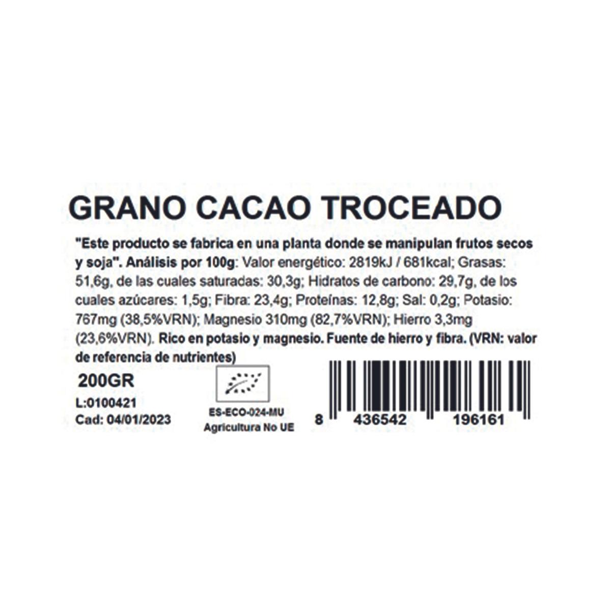 - Grano de cacao troceado* (100%)