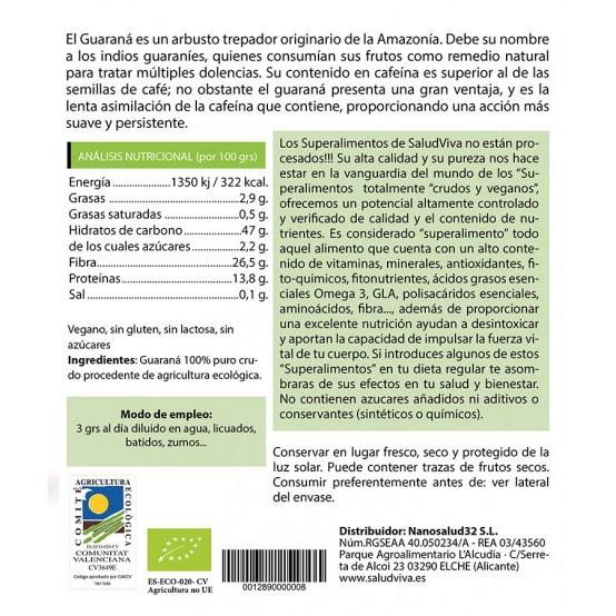 Toda la información sobre "Guaraná en polvo Salud Viva 100 g"