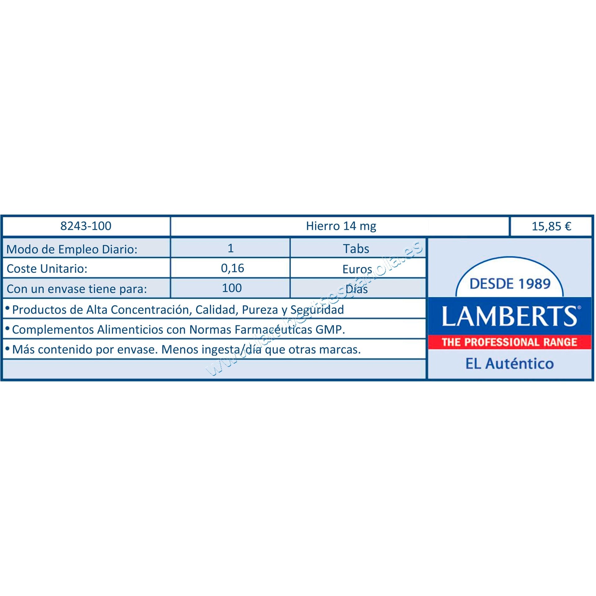 Hierro 14 mg (Lamberts) – 100 tabletas