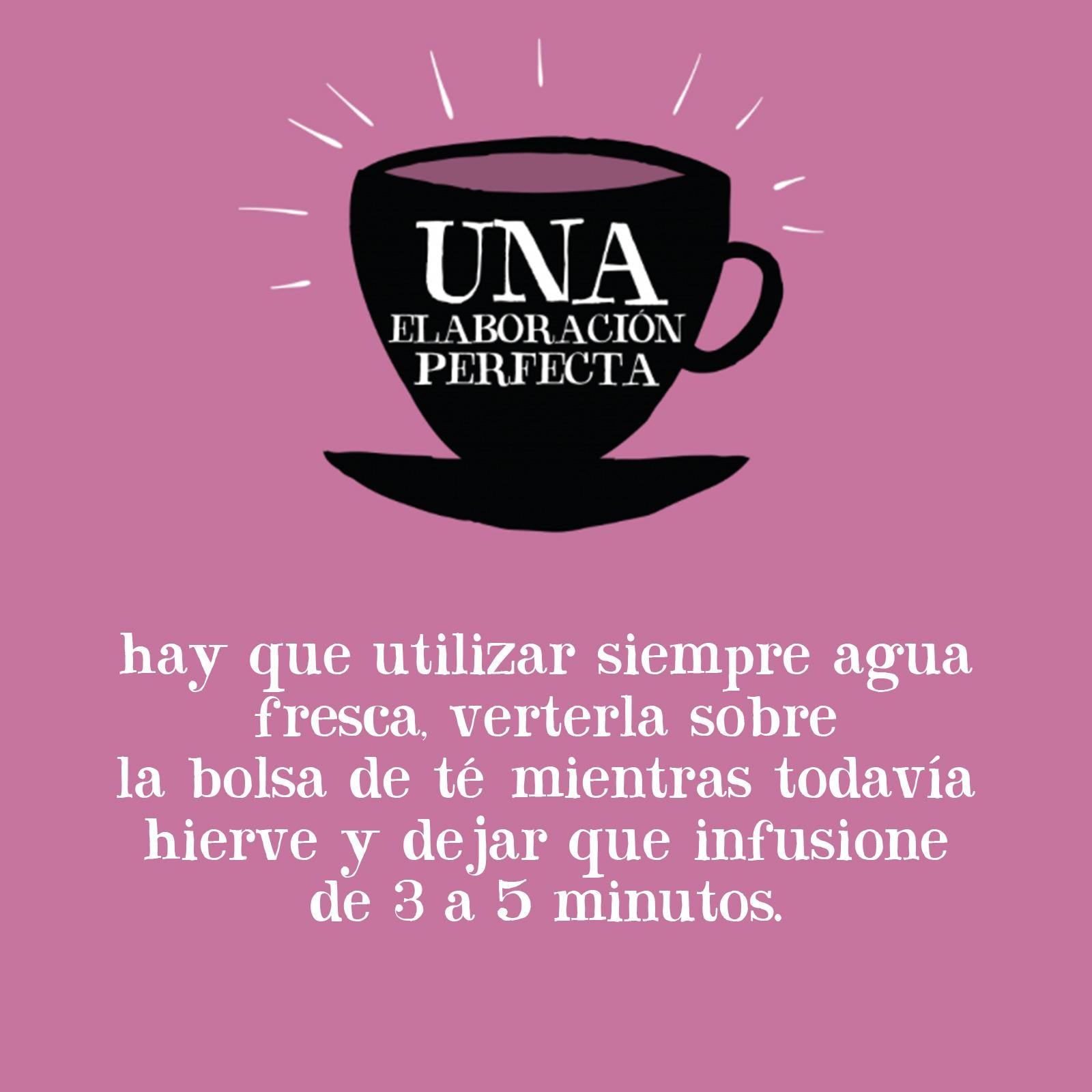 Colocar una bolsita en una taza y verter agua hirviendo. Dejar reposar entre 5 y 7 minutos antes de consumir. Ideal para tomar por la tarde o antes de dormir.