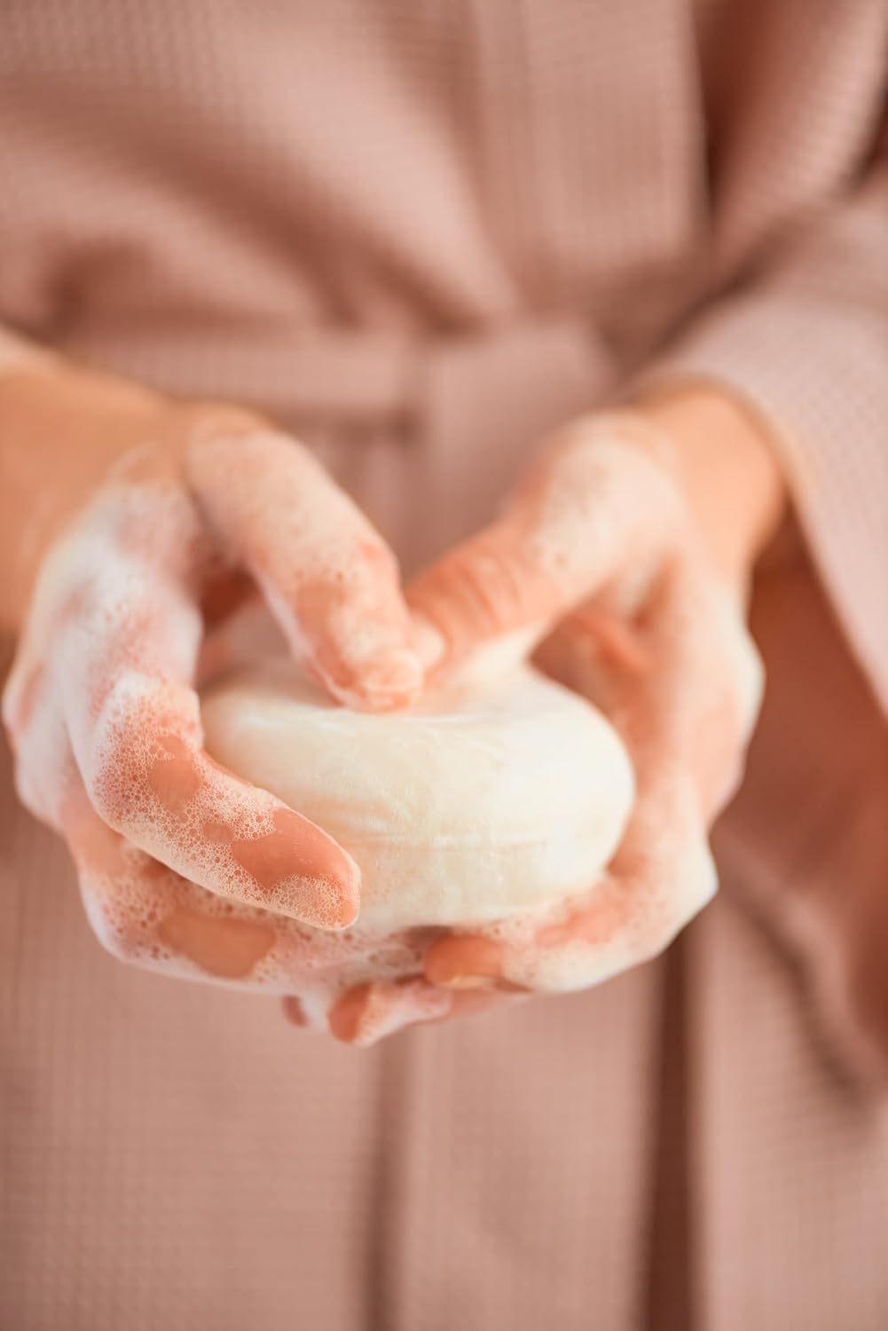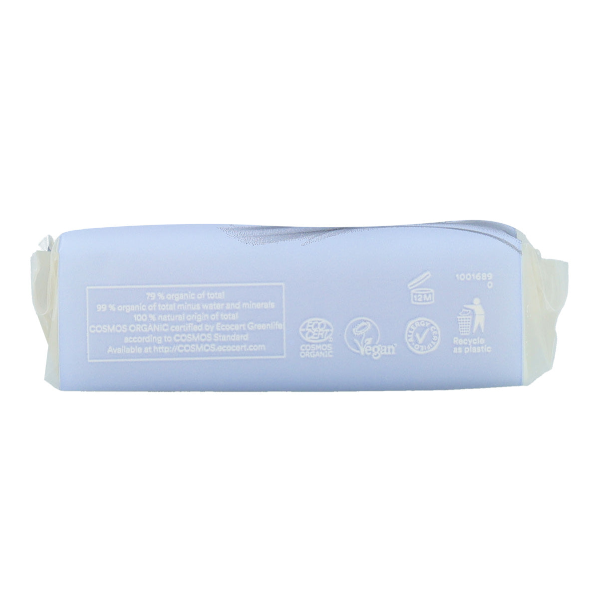 Jabón en pastilla suave y sin perfume, ideal para personas con piel sensible o con alergias. Limpia las manos eficazmente dejando una sensación de suavidad, gracias a su fórmula con glicerina vegetal. Está certificado por la Asociación Danesa de Asma y Alergia, así como por Ecocert COSMOS Organic. Es apto para veganos y no testado en animales.