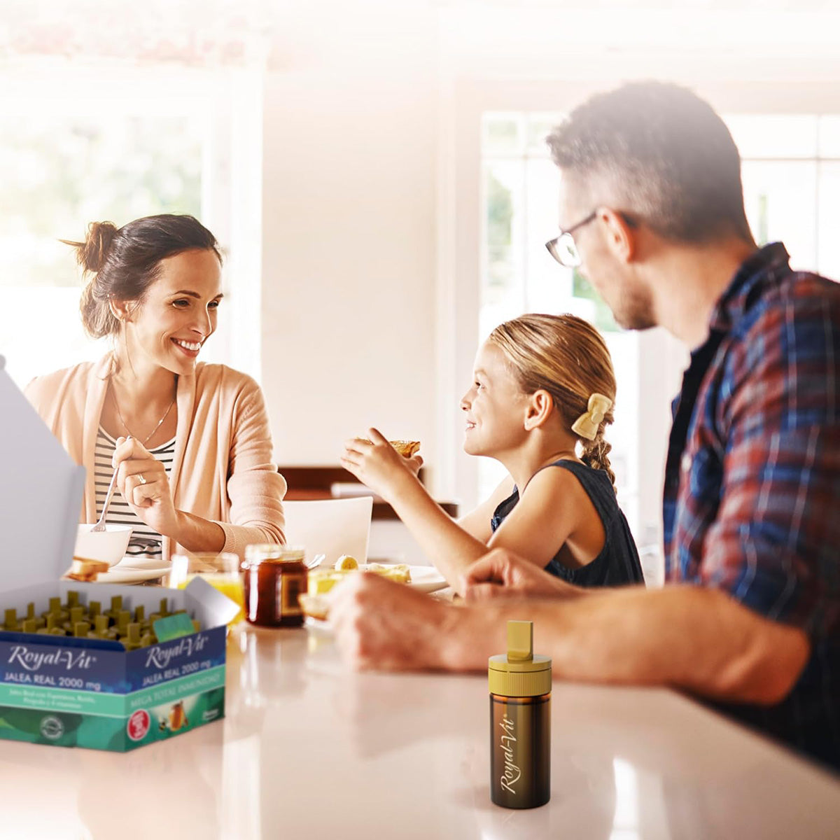 Complemento alimenticio a base de Jalea real y otros ingredientes que ayudan a las defensas naturales del organismo.