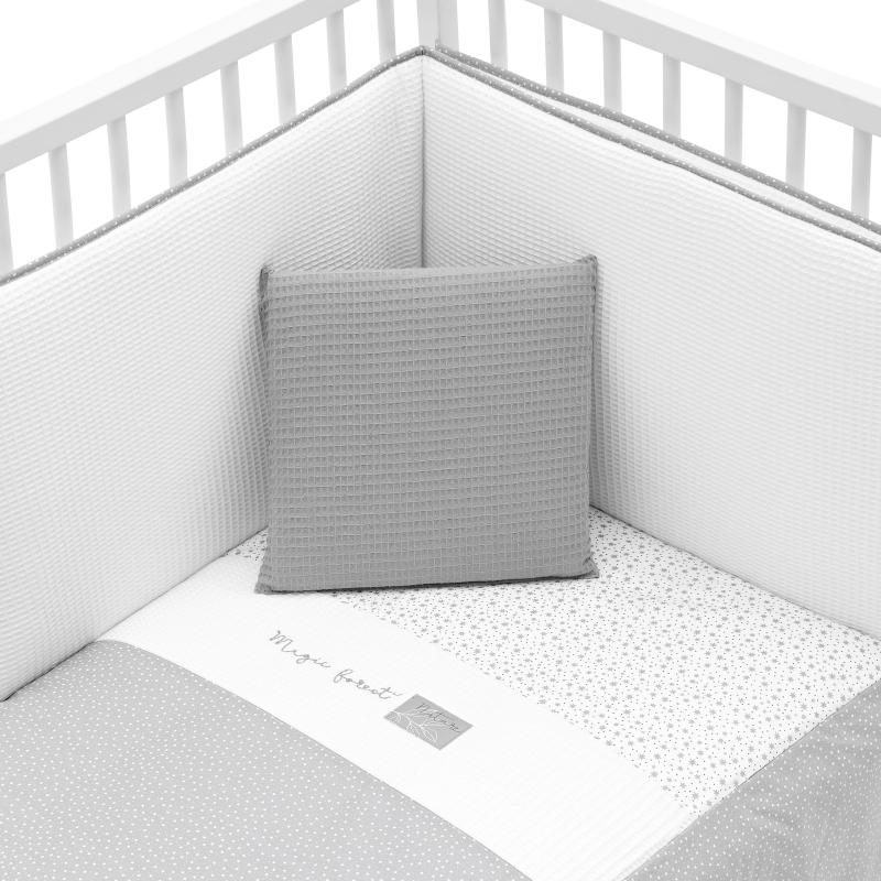 Juego de 2 piezas para vestir la cuna, compuesto por colcha invierno/verano más protector incluye un bonito cojín bordado.