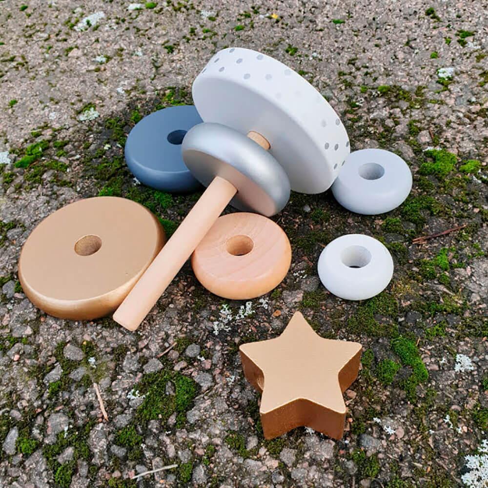 Toda la información sobre "Juego apilable de madera plateado Jabadabado"
