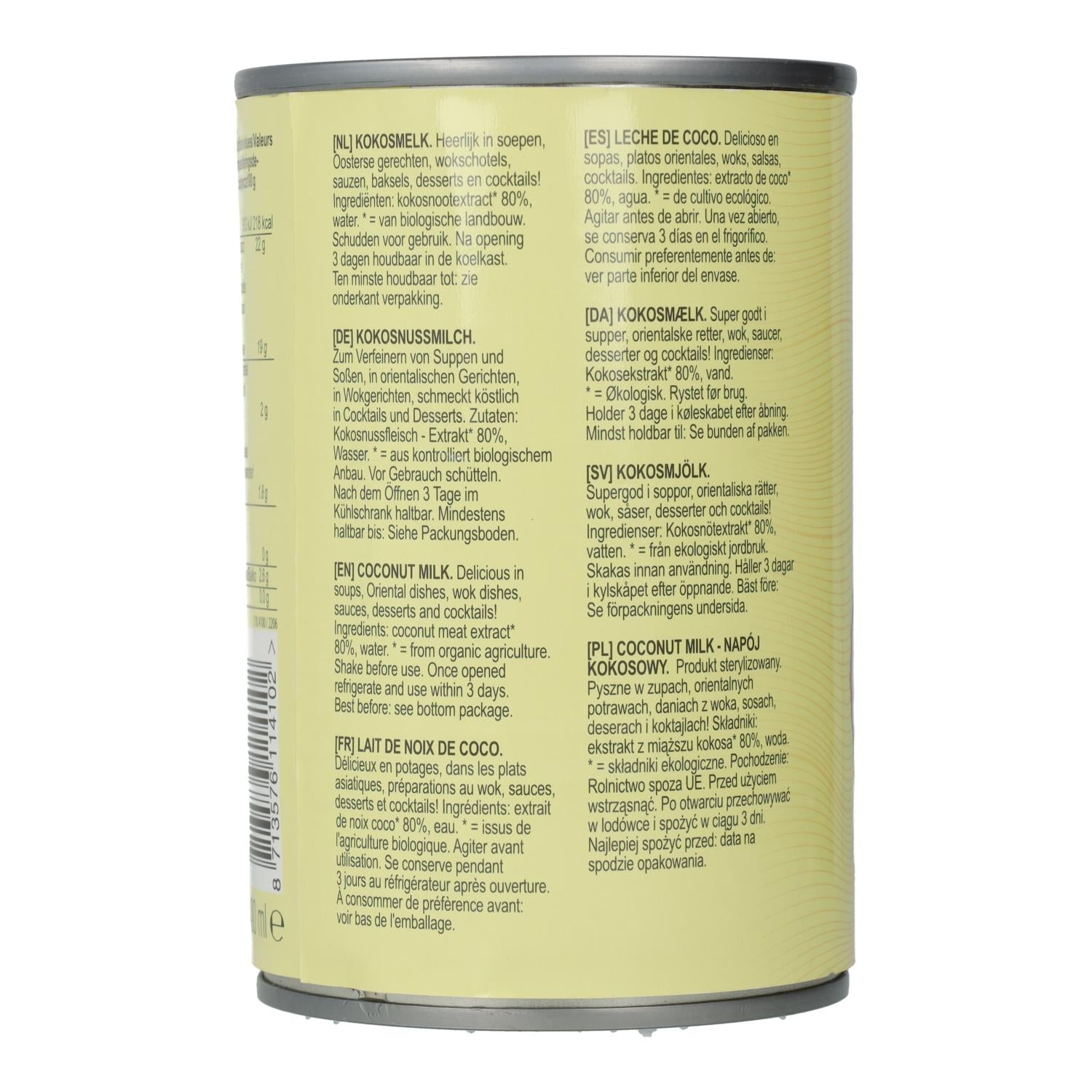 Toda la información sobre "Leche de coco 80 % BIO Terrasana, 400 ml"