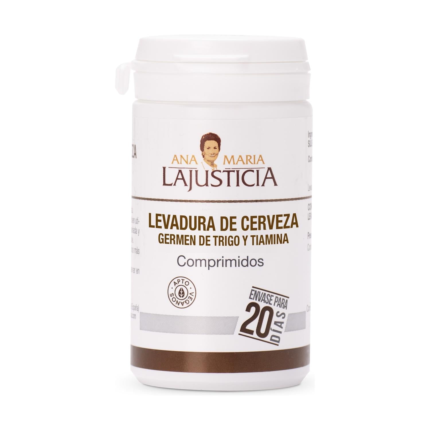 Levadura cerveza, germen Trigo y tiamina (B1) de Ana Maria Lajusticia es un complemento alimenticio rico en aminoácidos que contribuye al metabolismo energético normal.