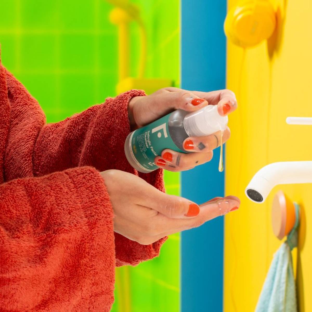 - Extiende el producto por toda la cara y también el cuello, realizando un suave masaje circular hasta que aparezca una ligera espuma. También, puedes aplicarlo sobre los ojos, ya que no irrita.