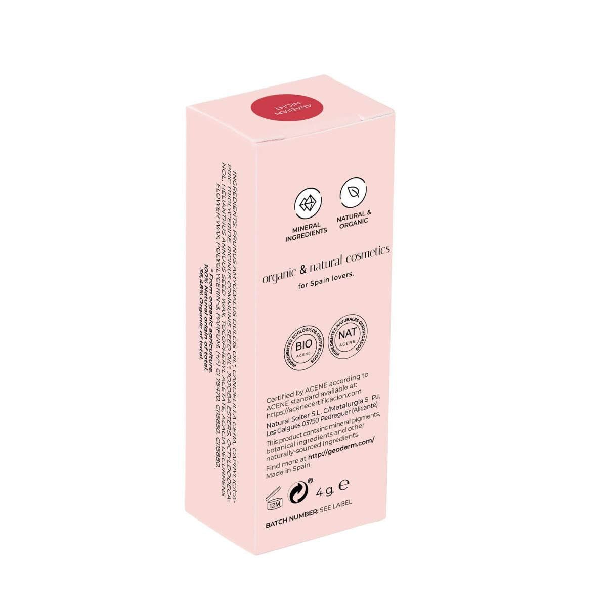 Toda la información sobre "Lipstick Arabian Night/Dark Red (BIO) Geoderm 4 gr"