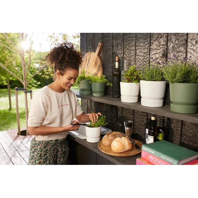 Toda la información sobre "Macetero con plato integrado Greenville Elho Blanco 30 cm"