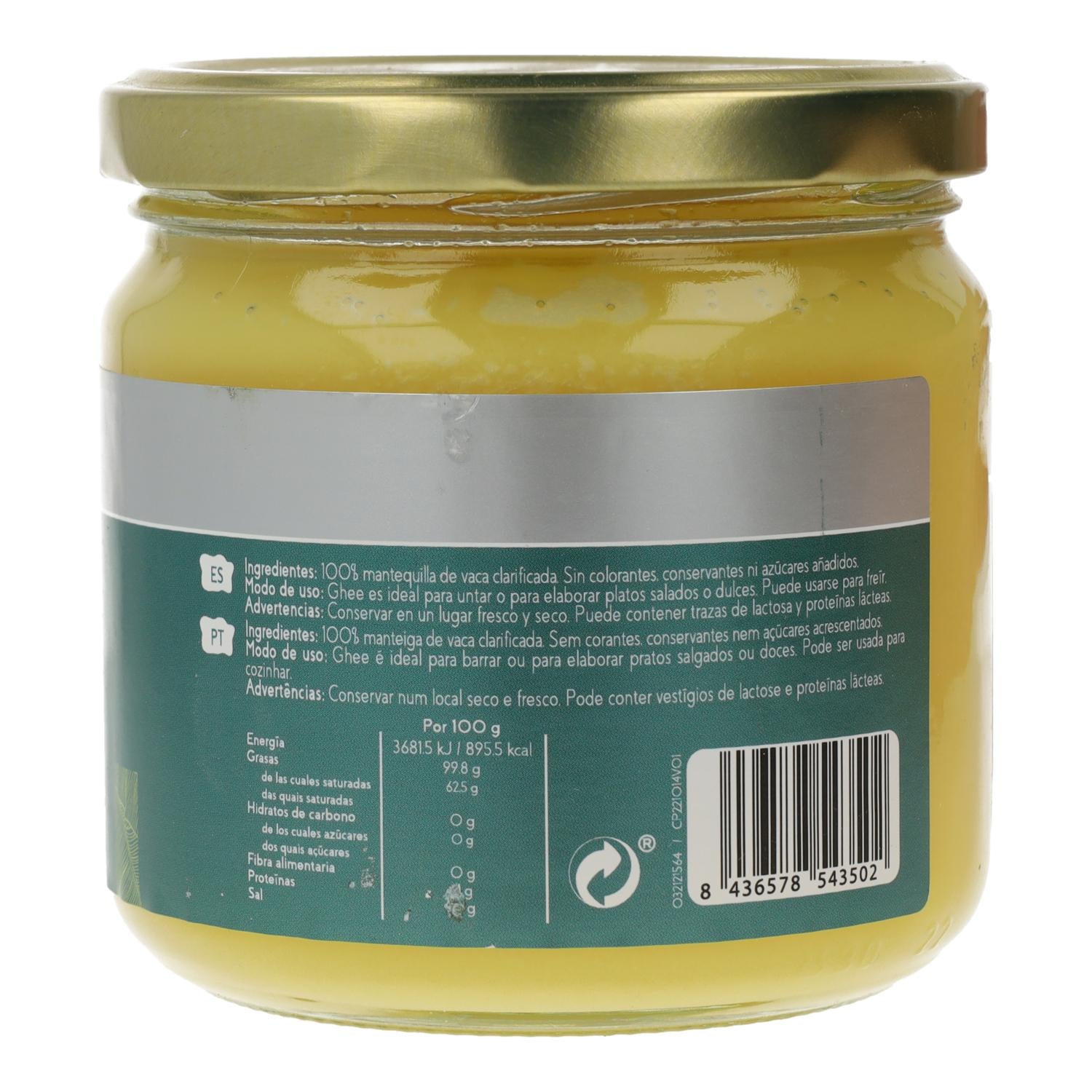 100 % mantequilla de vaca clarificada. Sin colorantes, conservantes ni azúcares añadidos