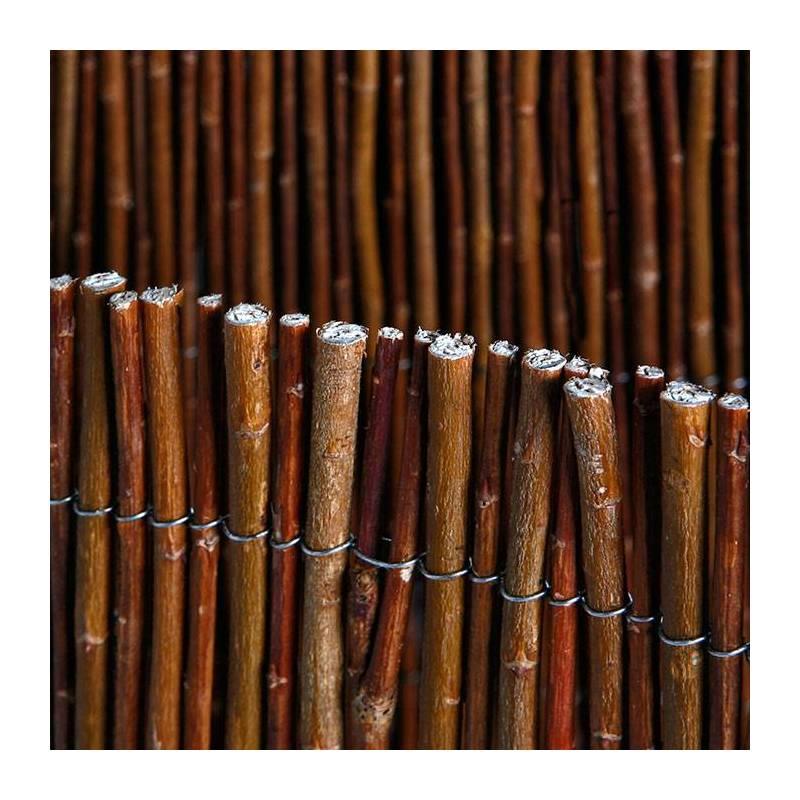 Se aplica tanto a vallados como en ocultación para parcelas y jardines. Se fabrica con varillas de mimbre natural sin pelar, de color rojizo tejidas con hilo de acero galvanizado en hiladas de 10 cm de distancia.