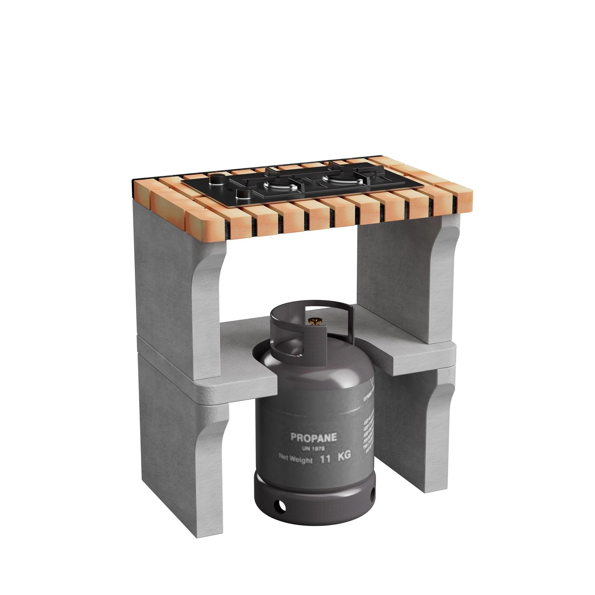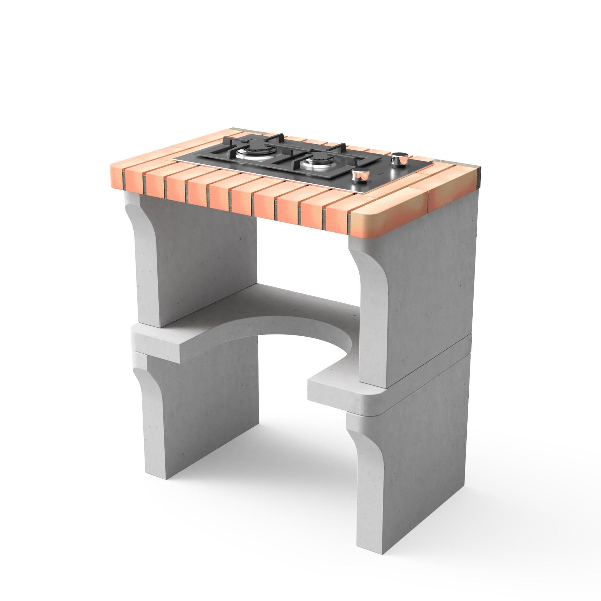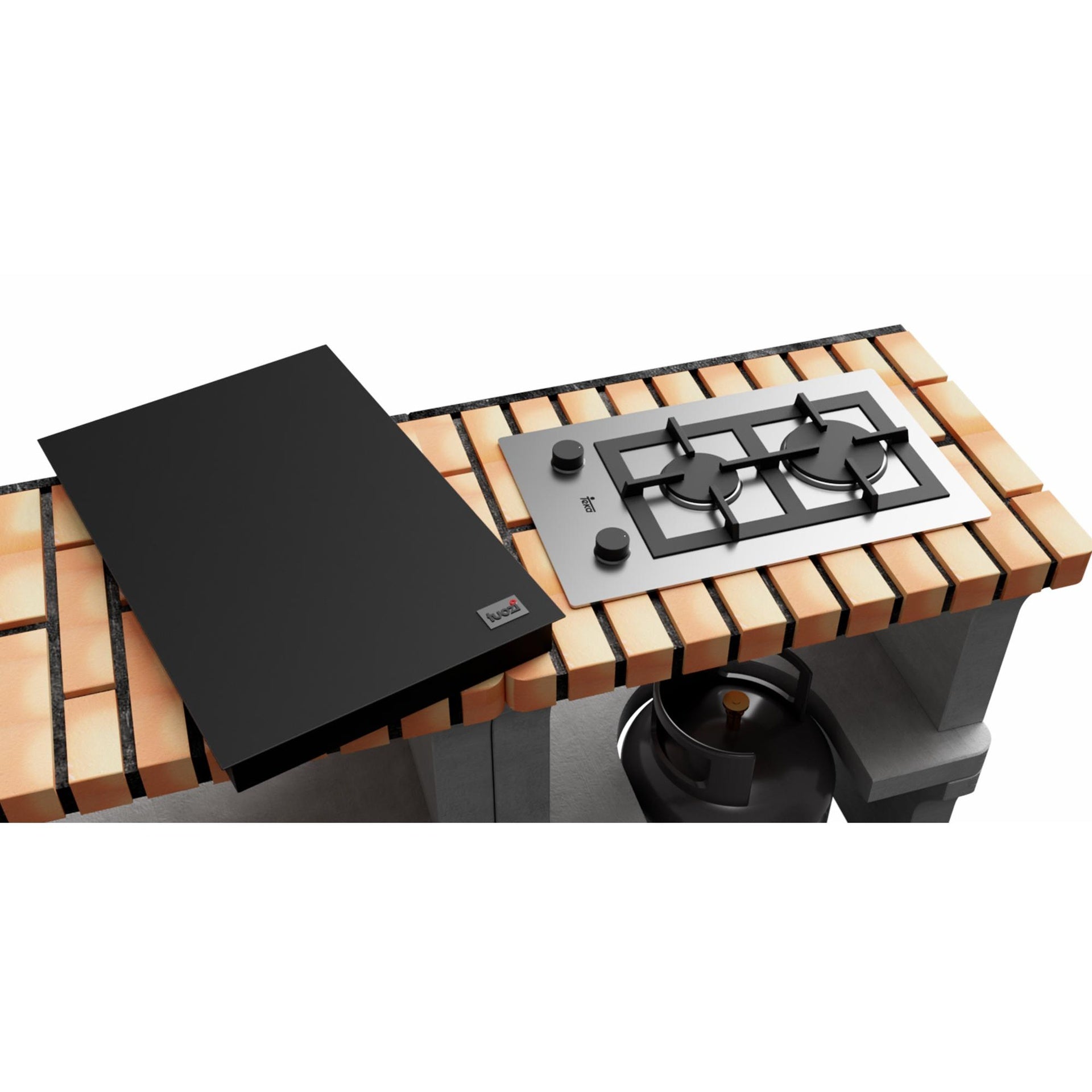 Módulo de hormigón gris refractario y ladrillo naranja claro. Módulo con placa de gas modular de 30 cm Teka modelo EFX.30.1 2G AI AL CI