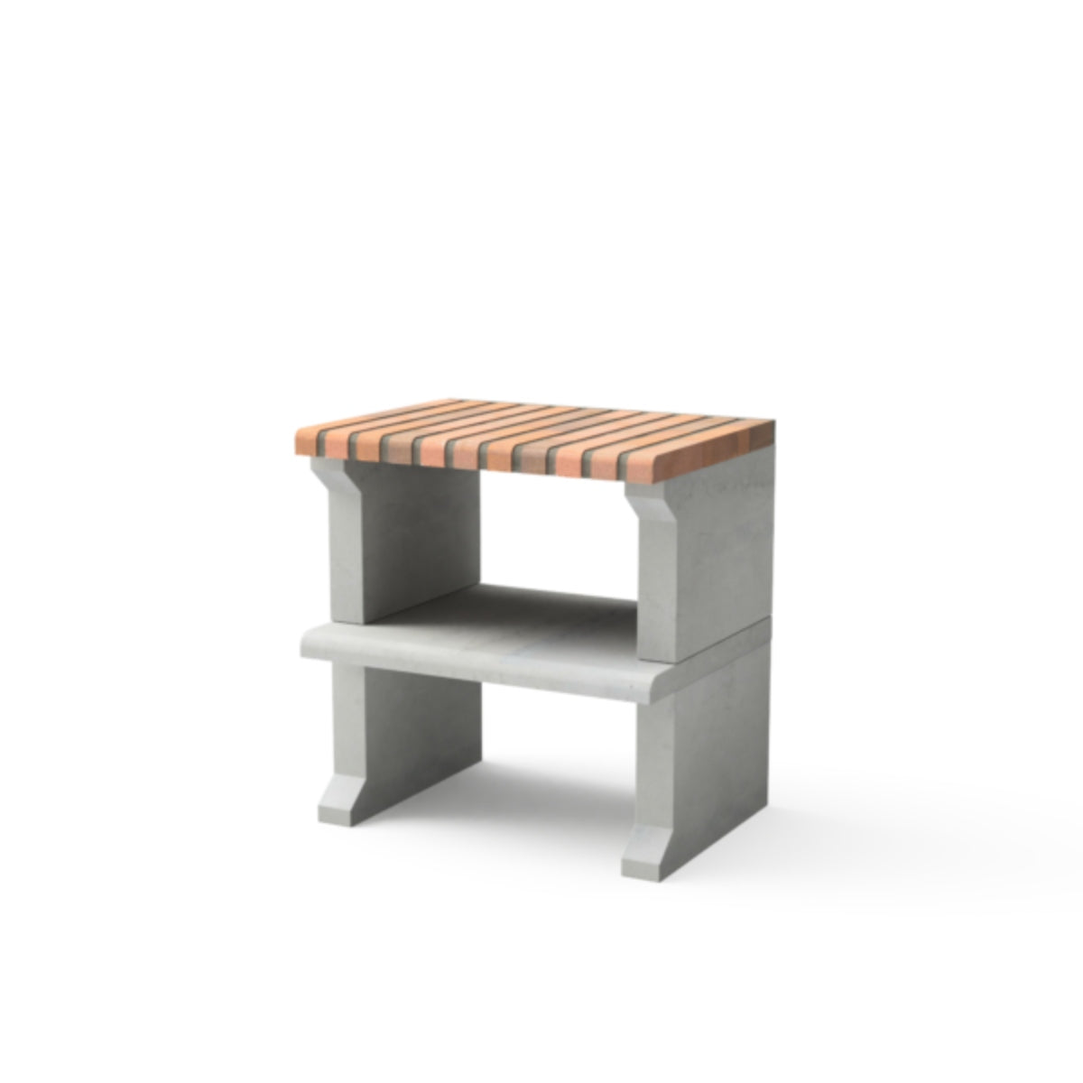 Caballete lateral fabricado en hormigón refractario y ladrillo marrón. 1 estante inferior de ladrillo. No es necesario pintarlo.