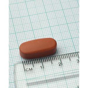 Tableta ovalada con recubrimiento naranja/marrón.