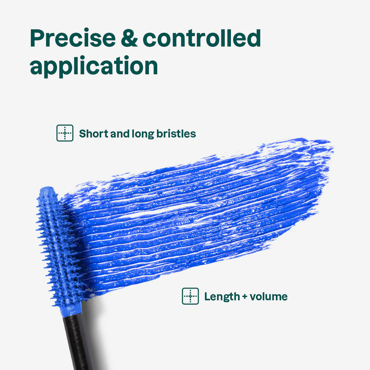 Su textura ligera, combinada con un cepillo de cerdas cortas y largas, alarga las pestañas desde la raíz hasta las puntas.