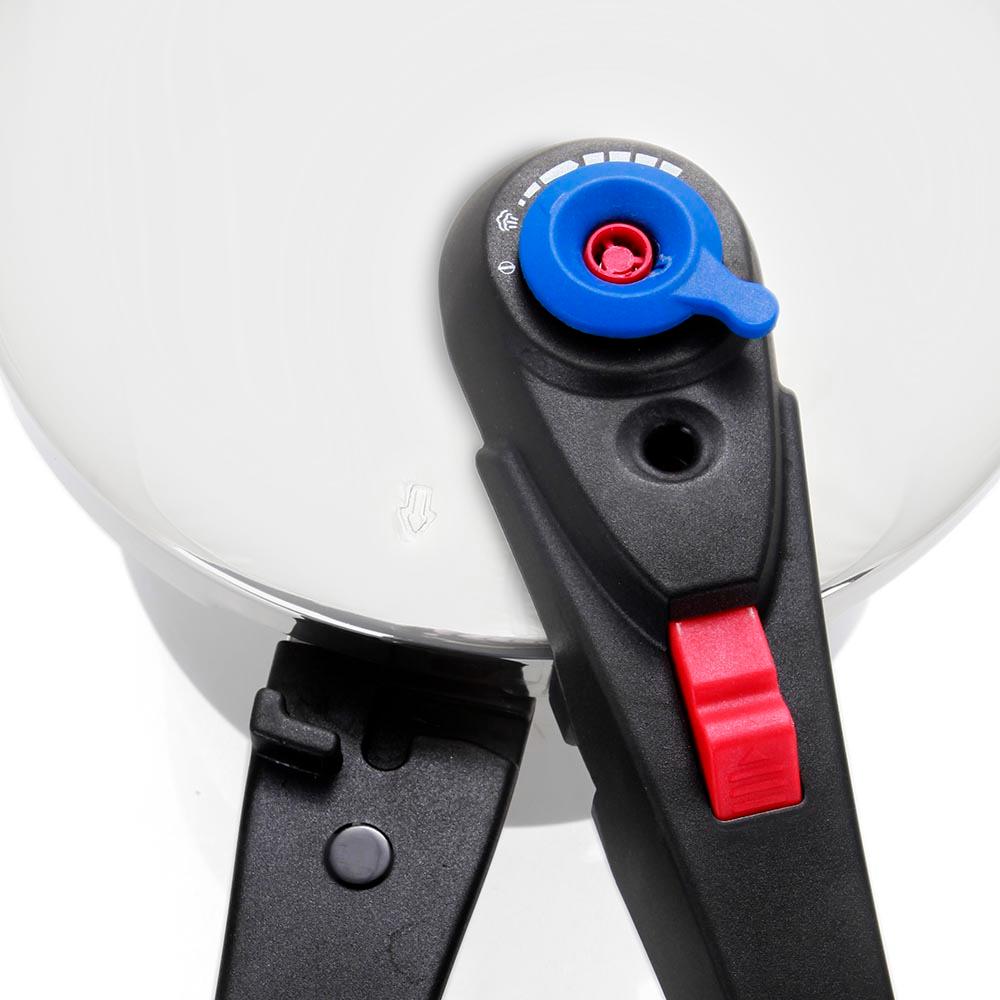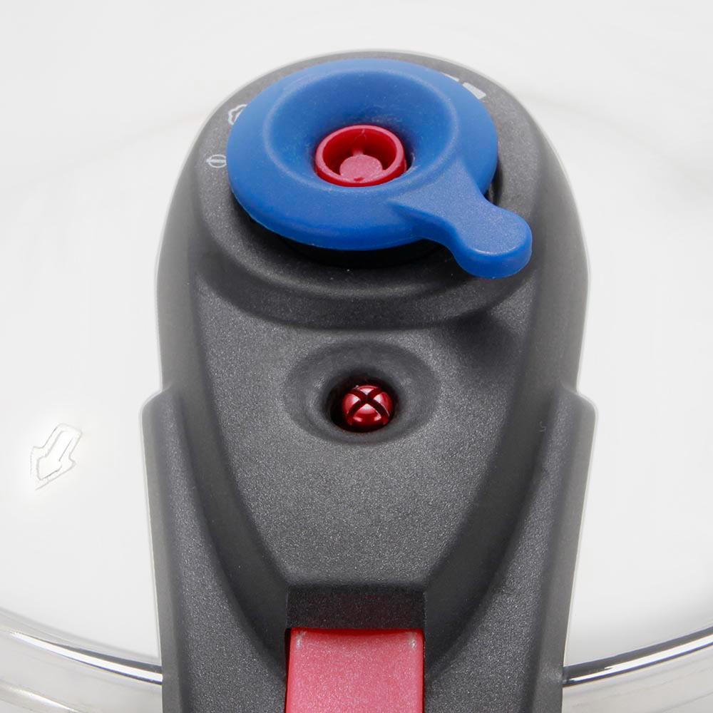 - Cinco sistemas de seguridad. Bloqueo manual del mango, sensor de presión con bloqueo automático de la tapa, válvula de trabajo, válvula de seguridad y ventanal lateral