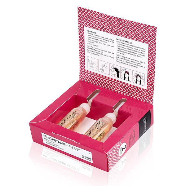 El Pack Multivitamina Energy de Nuggela & Sulé es una formulación exclusiva que aporta vitaminas esenciales (E, C, B3, B5 y B6) para la salud del cabello, a la vez que ofrece activos para revitalizar e iluminar el cabello como el Glucógeno Marino, Esencia de Caña de Azúcar y Cáscara de Limón.
