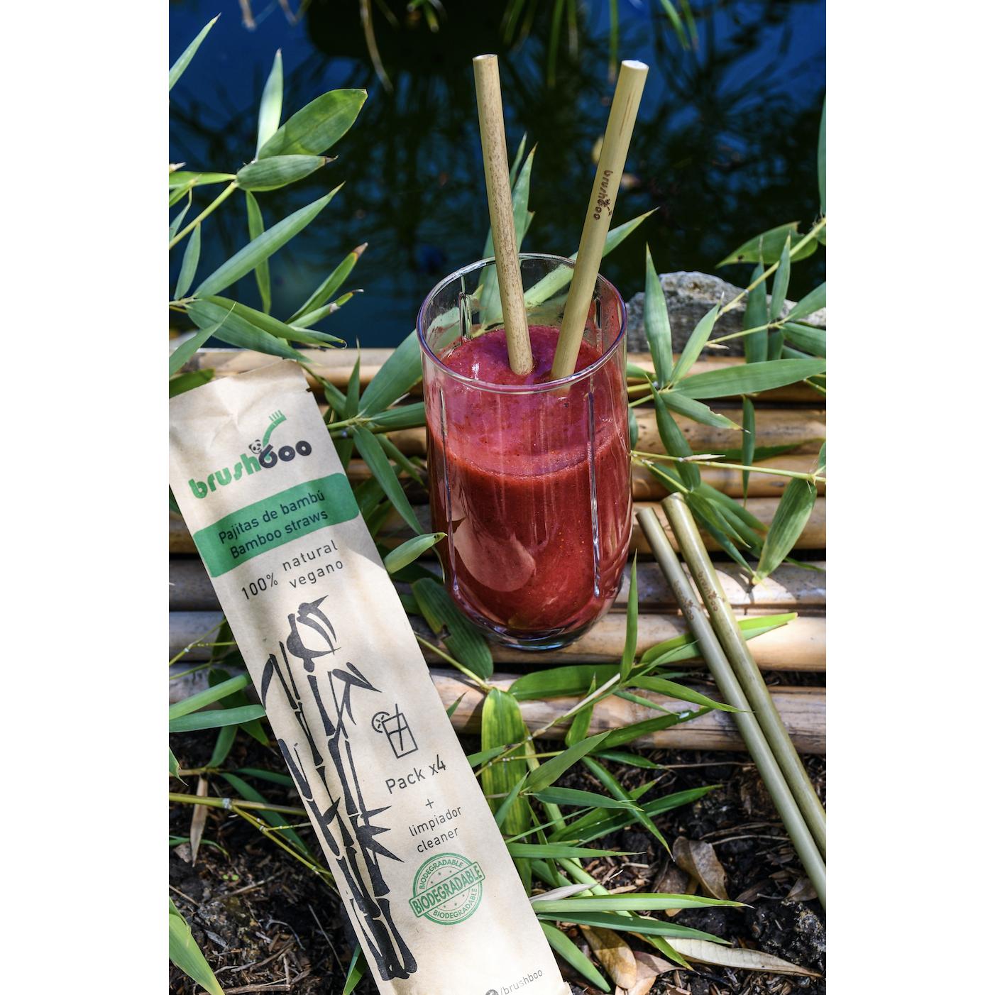 Pack 4 pajitas de bambú y limpiador Brushboo