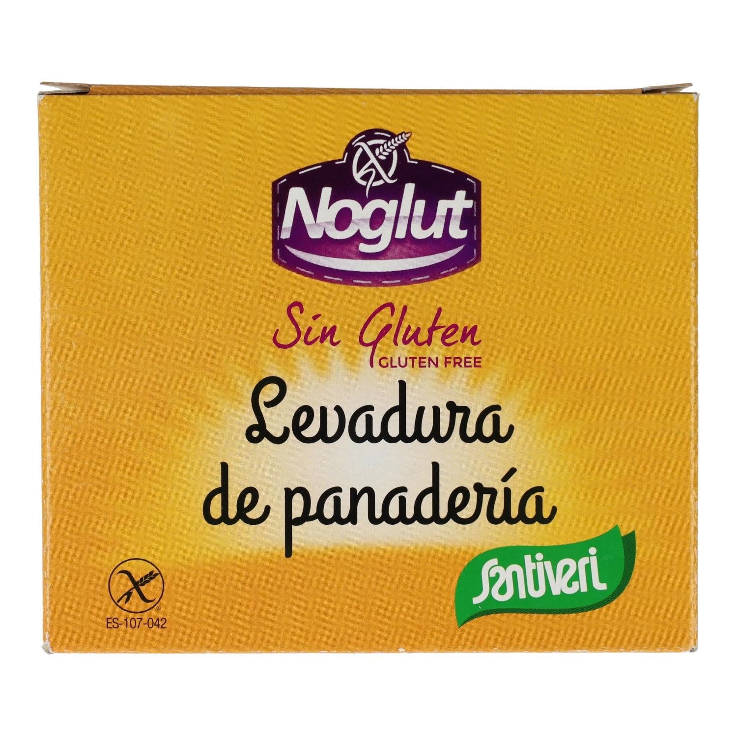 Levadura seca de panadería sin gluten de la marca Noglut (Santiveri), presentada en un envase de seis sobres de 11 g cada uno (66 g en total). Especialmente diseñada para personas con intolerancia al gluten, permite hornear panes, bollería, pizzas y masas fermentadas con un resultado ligero y esponjoso