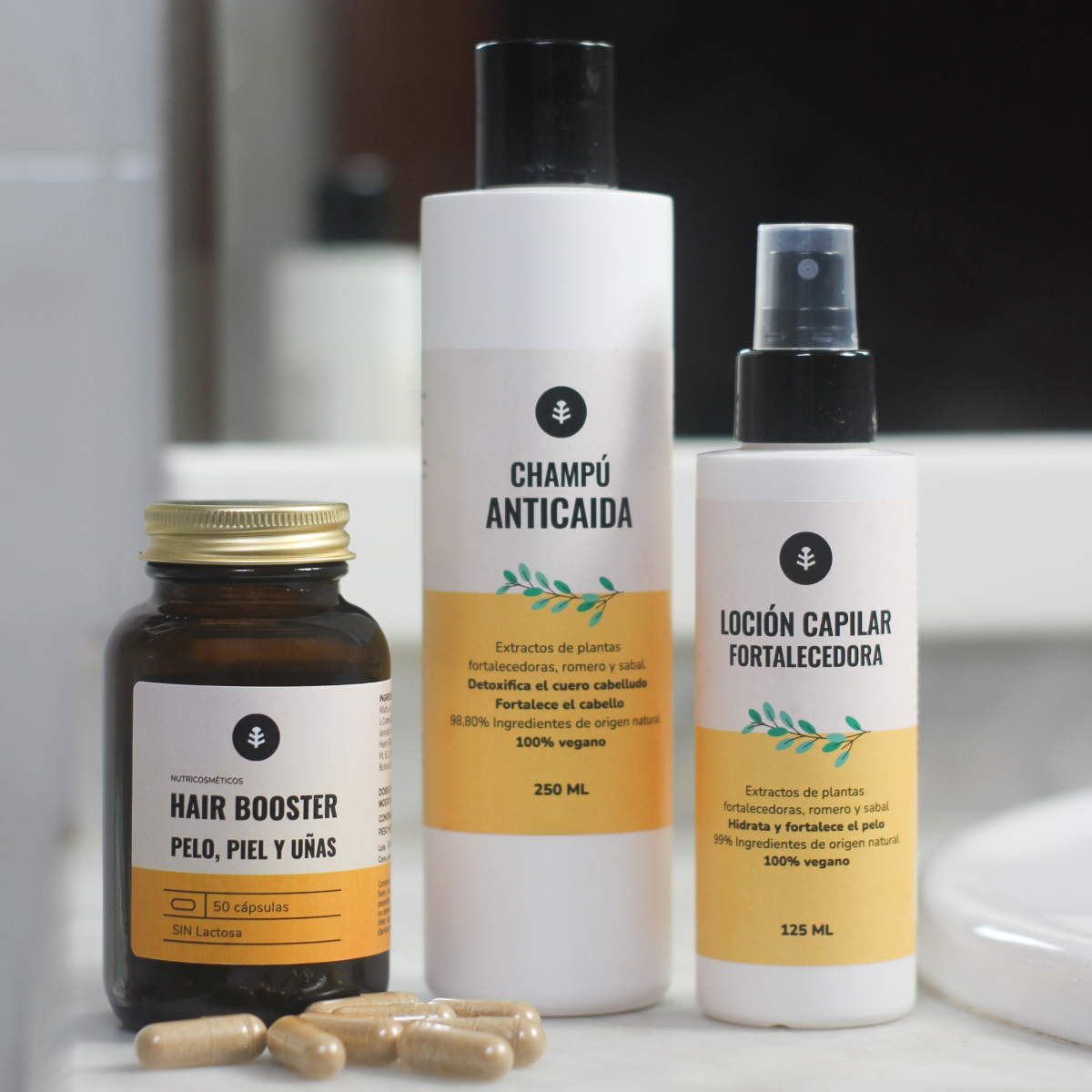 Champú anticaída + vitaminas para el pelo + fortalecedor de cejas y pestañas