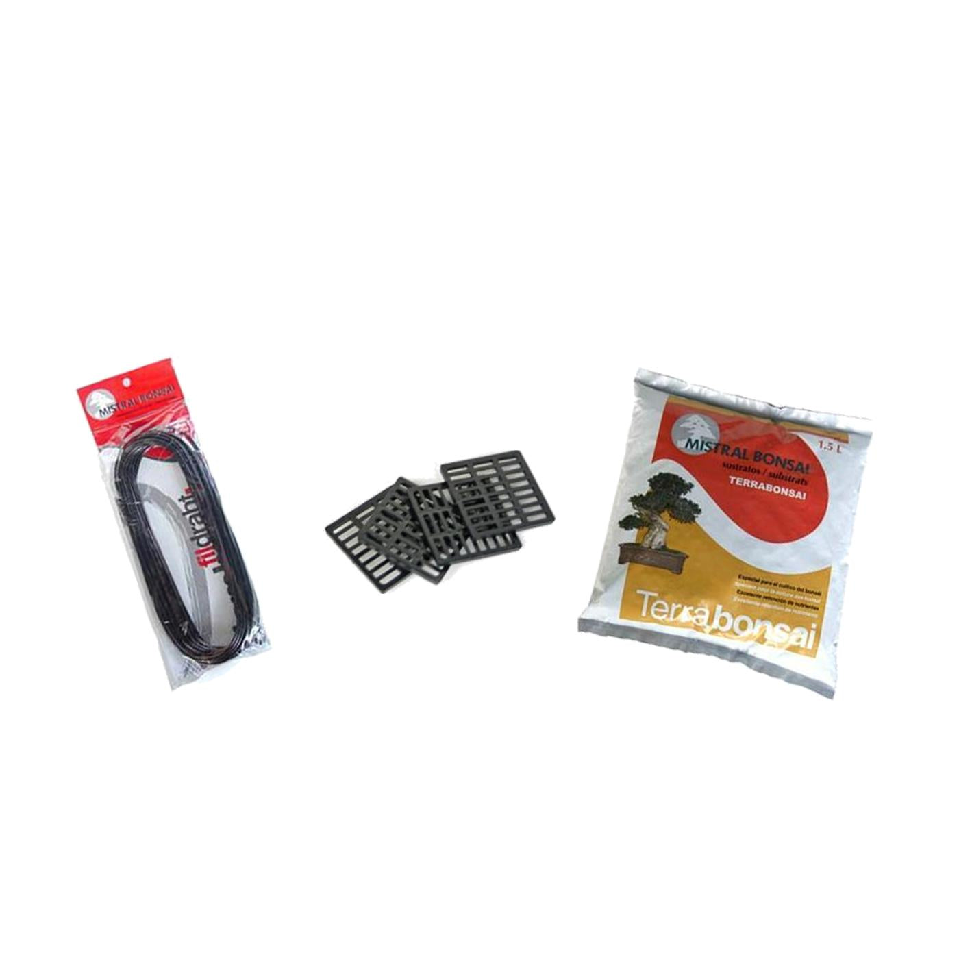 Si ya dispones de un tiesto para trasplantar tu bonsái, este pack te proporcionará los consumibles mínimos necesarios para realizar el trasplante del bonsái.