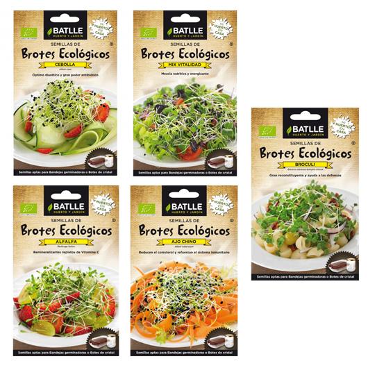 Pack formado por variedades de semillas para cultivar germinados. El pack incluye:
