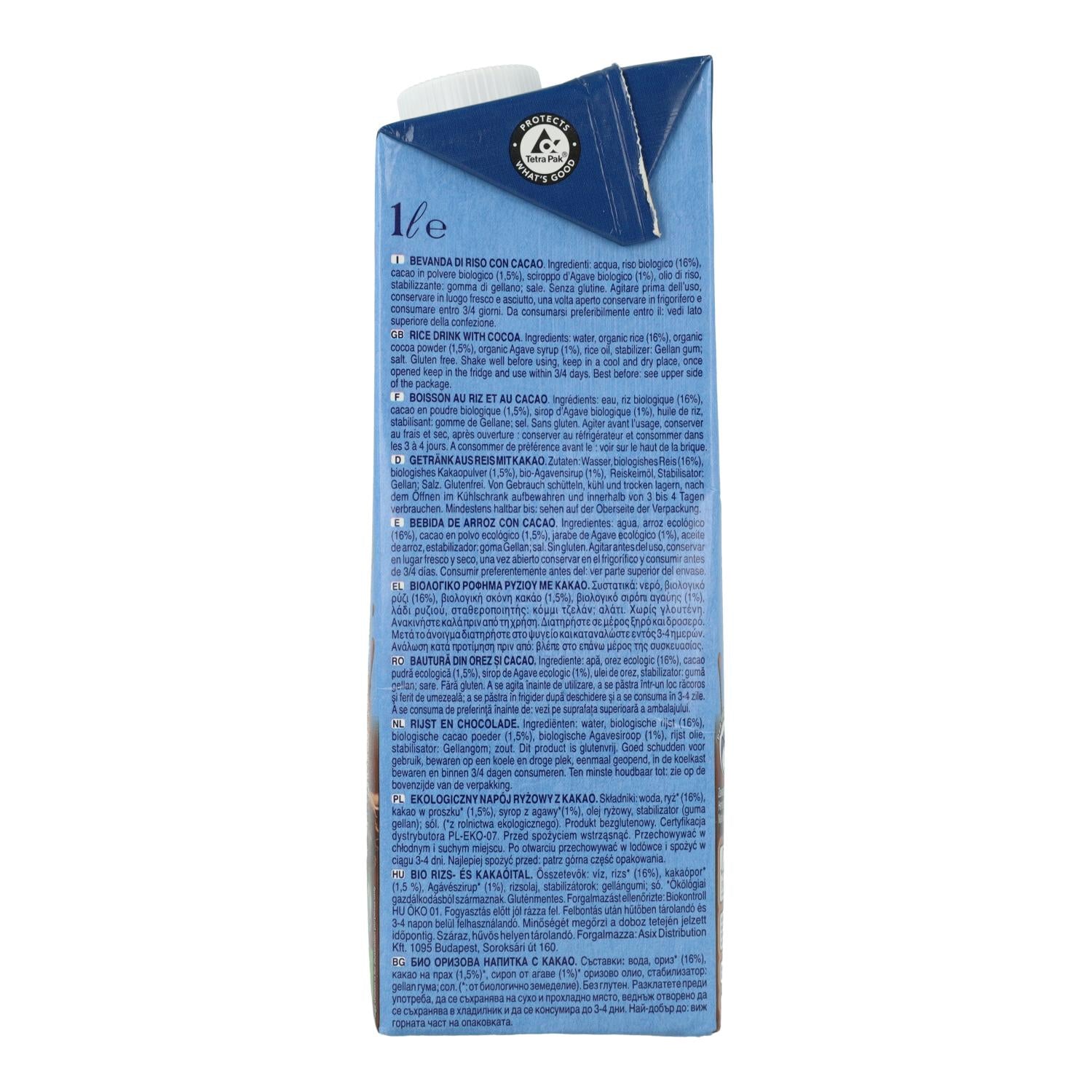 Ingredientes: agua, arroz(17%), azúcar de caña, cacao en polvo (1'5%),