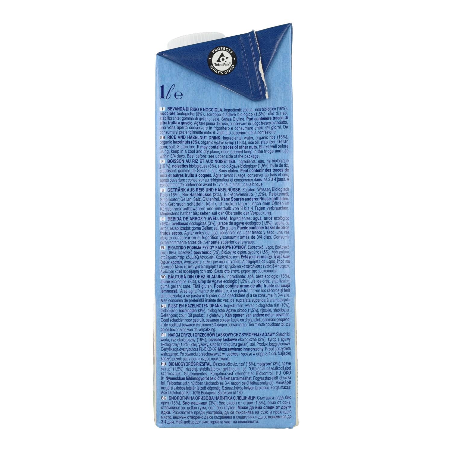 INGREDIENTES: Agua, arroz ecologico 16%, avellana ecológica 3%, sirope de agave