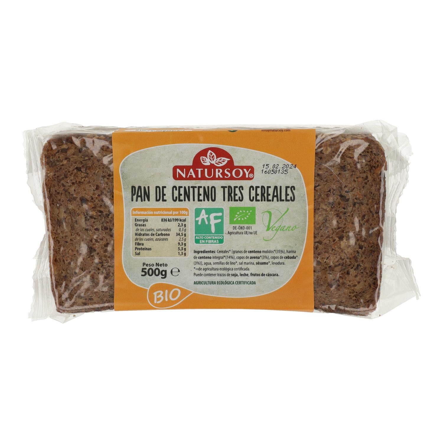 Toda la información sobre "Pan centeno 3 cereales ECO, 500 g. Natursoy"