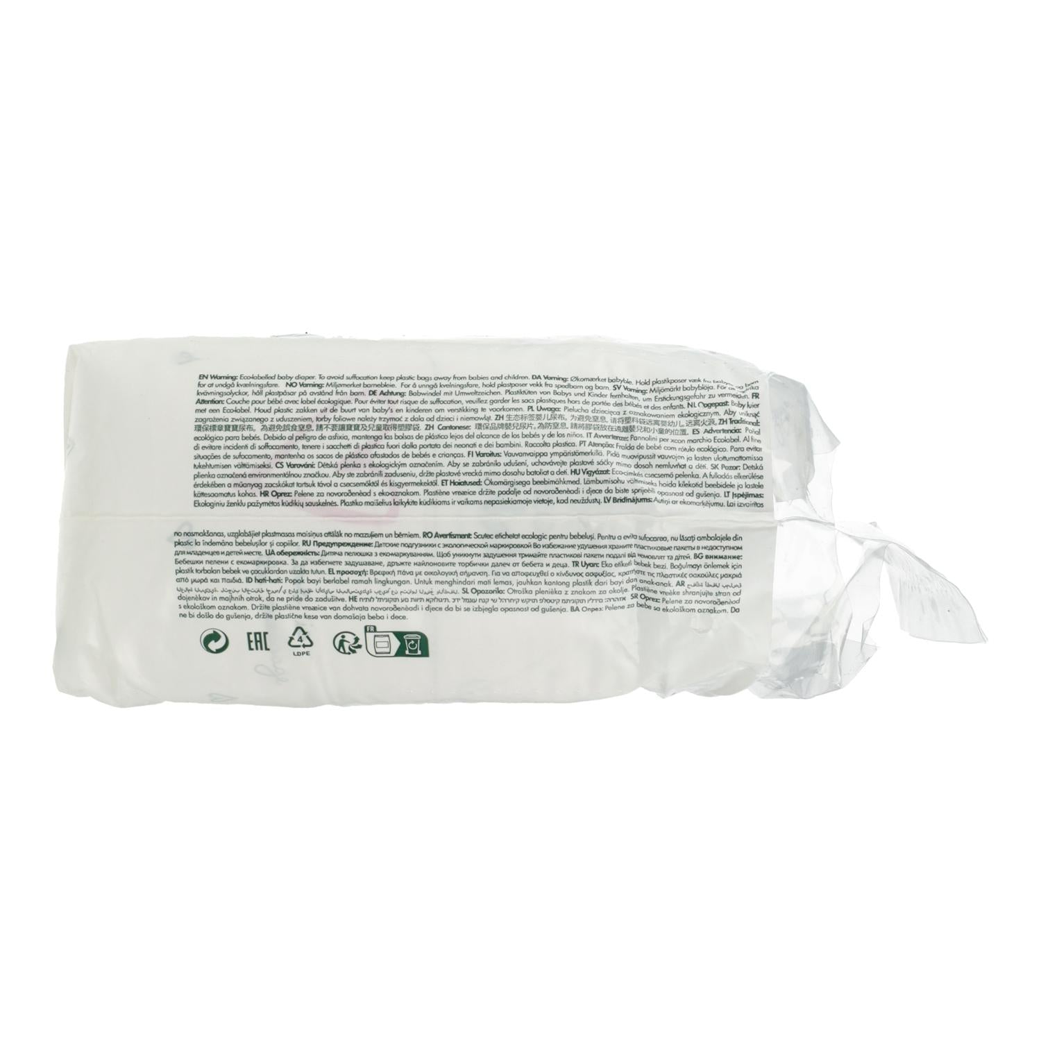 Material certificado 100% natural contra la piel de los bebés. Garantizado libre de: dioxinas, fragancias / perfumes, ftalatos, compuestos orgánicos volátiles, colorantes, lociones, lates, TBT, GMO. Material de embalaje en material renovable con certificación independiente de la renovabilidad de las materias primas. La certificación de Vinçotte y BPI según ASTM D6866. Certificado por la Asociación Sueca de Asma y Alergia. Rendimiento Premium galardonado. Primer pañal ecológico con certificación OK Biobased de una de las organizaciones sin fines de lucro más exigentes del mundo, Vincotte. 100% de pulpa certificada FSC. Diseñado para minimizar los riesgos de alergia y dermatitis del pañal. El color de impresión en los pañales está libre de metales pesados y no es dañino para la salud.