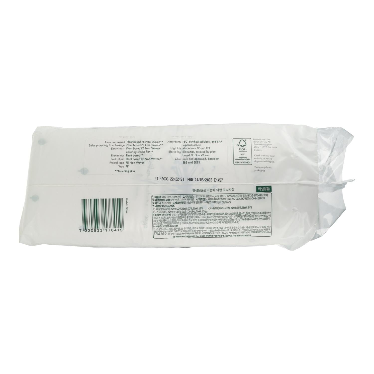 • Diseñado para minimizar los riesgos de alergia y dermatitis del pañal. El color de impresión en los pañales está libre de metales pesados y no es dañino para la salud.