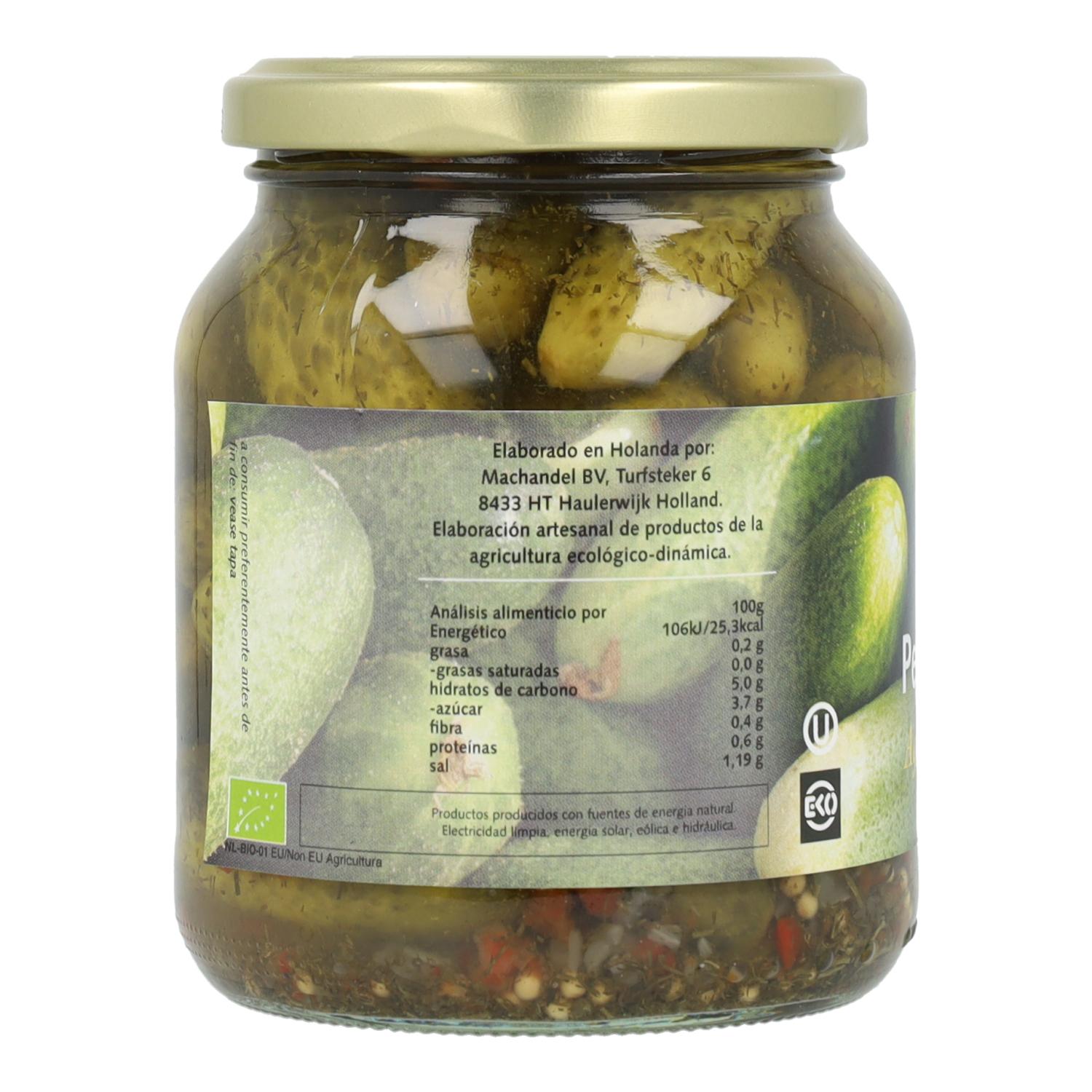 Pepinillos biológicos de elaboración artesanal mediante agricultura ecológico-dinámica.