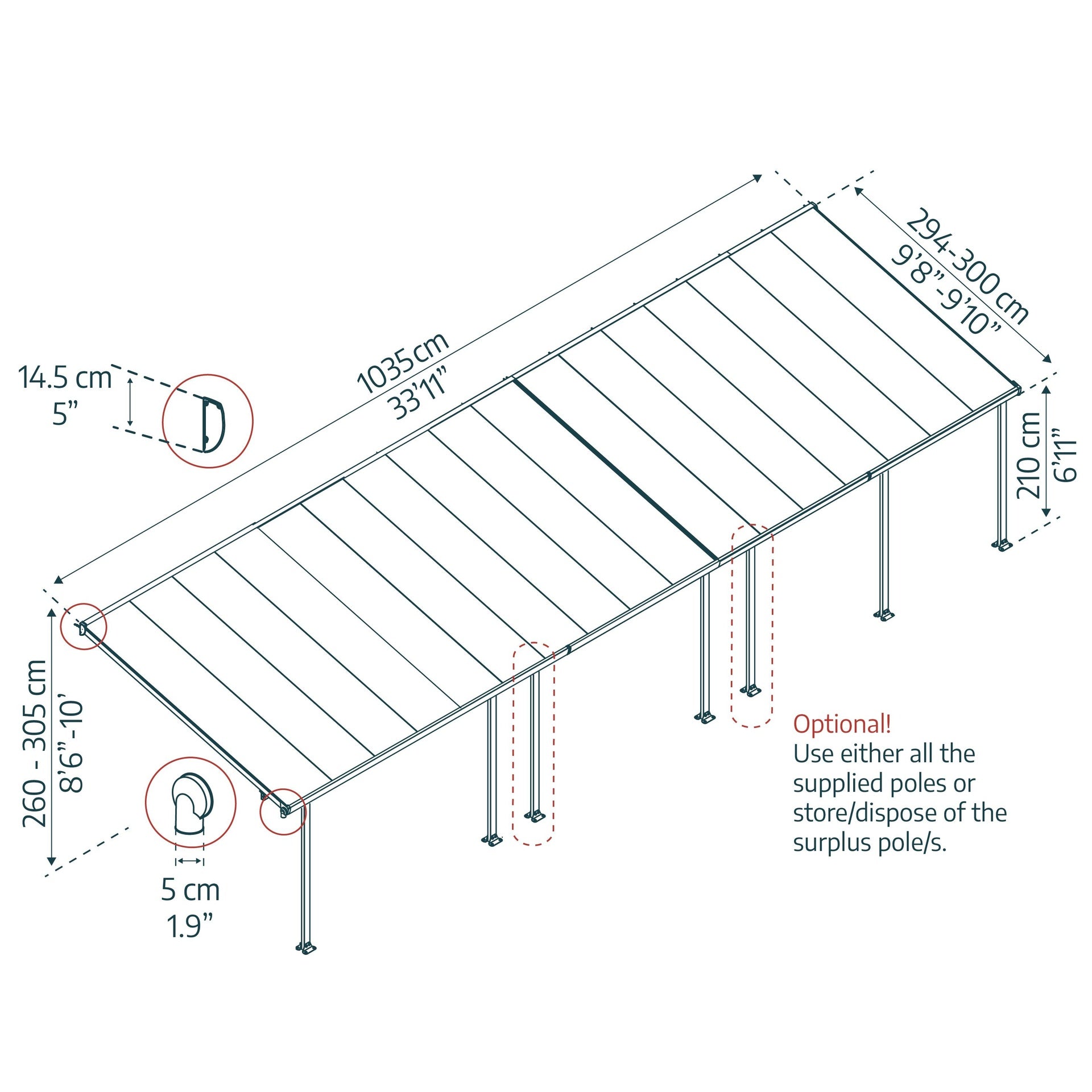 Toda la información sobre "Pérgola adosada Feria 300x1035 cm gris"