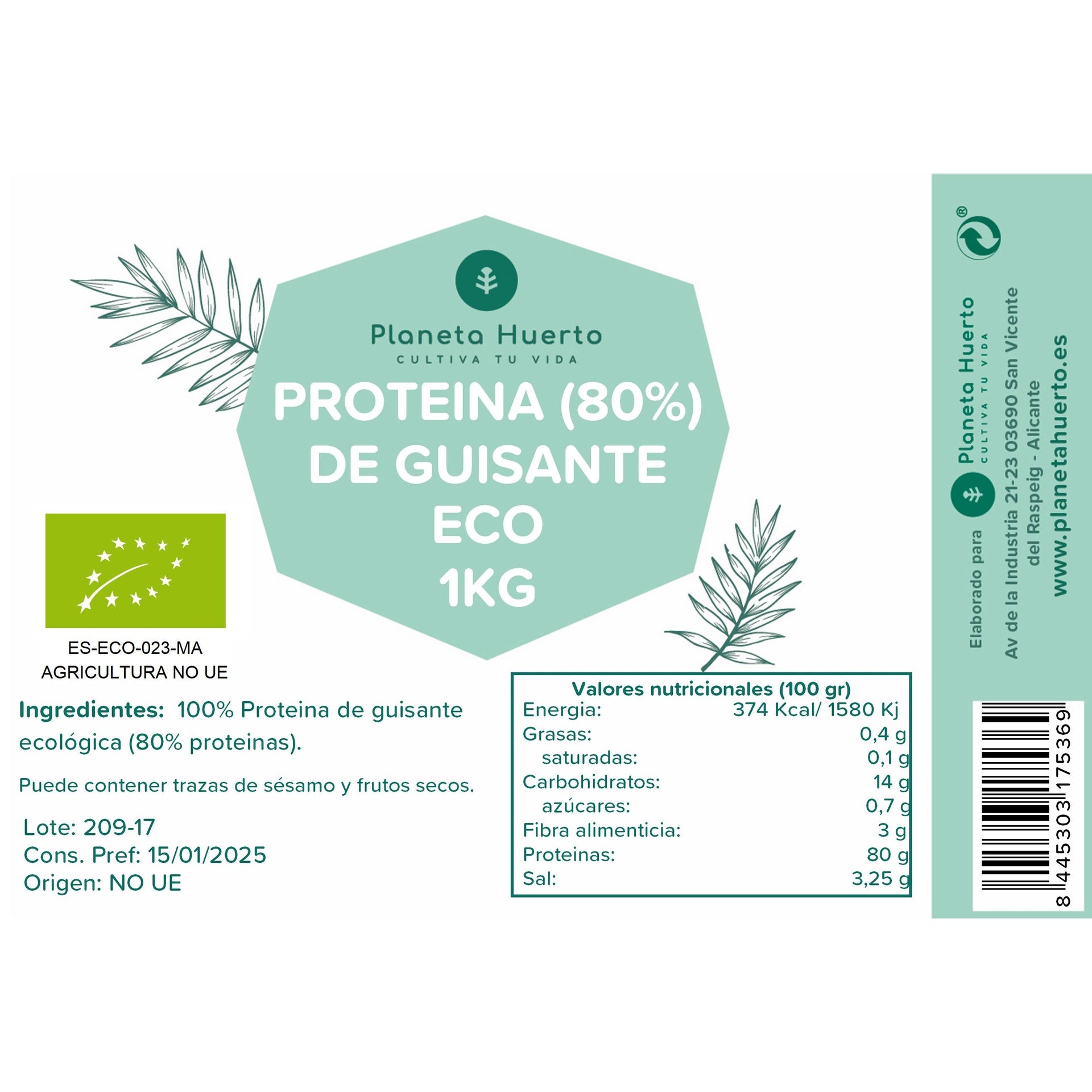 Toda la información sobre "Proteina de Guisante 80% ECO Planeta Huerto 1 kg"