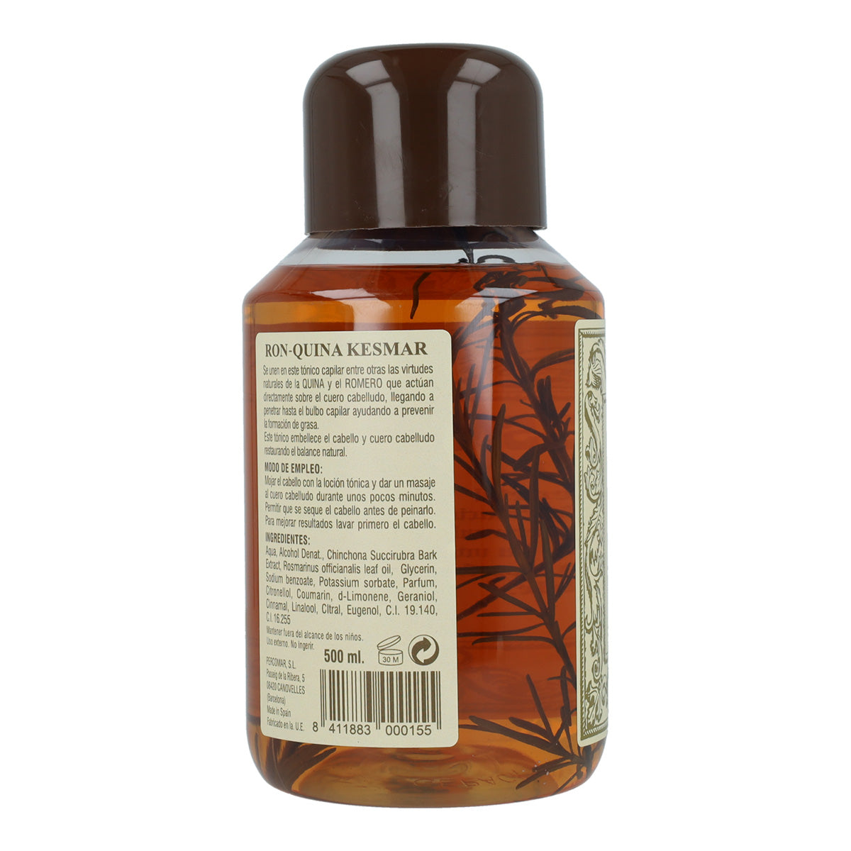 Se unen en este tónico capilar entre otras las virtudes naturales de la Quina (cinchona) y el romero (rosmarinus officinalis) que actúan directamente sobre el cuero cabelludo, llegando a penetrar hasta el bulbo capilar evitando la generación de seborrea.