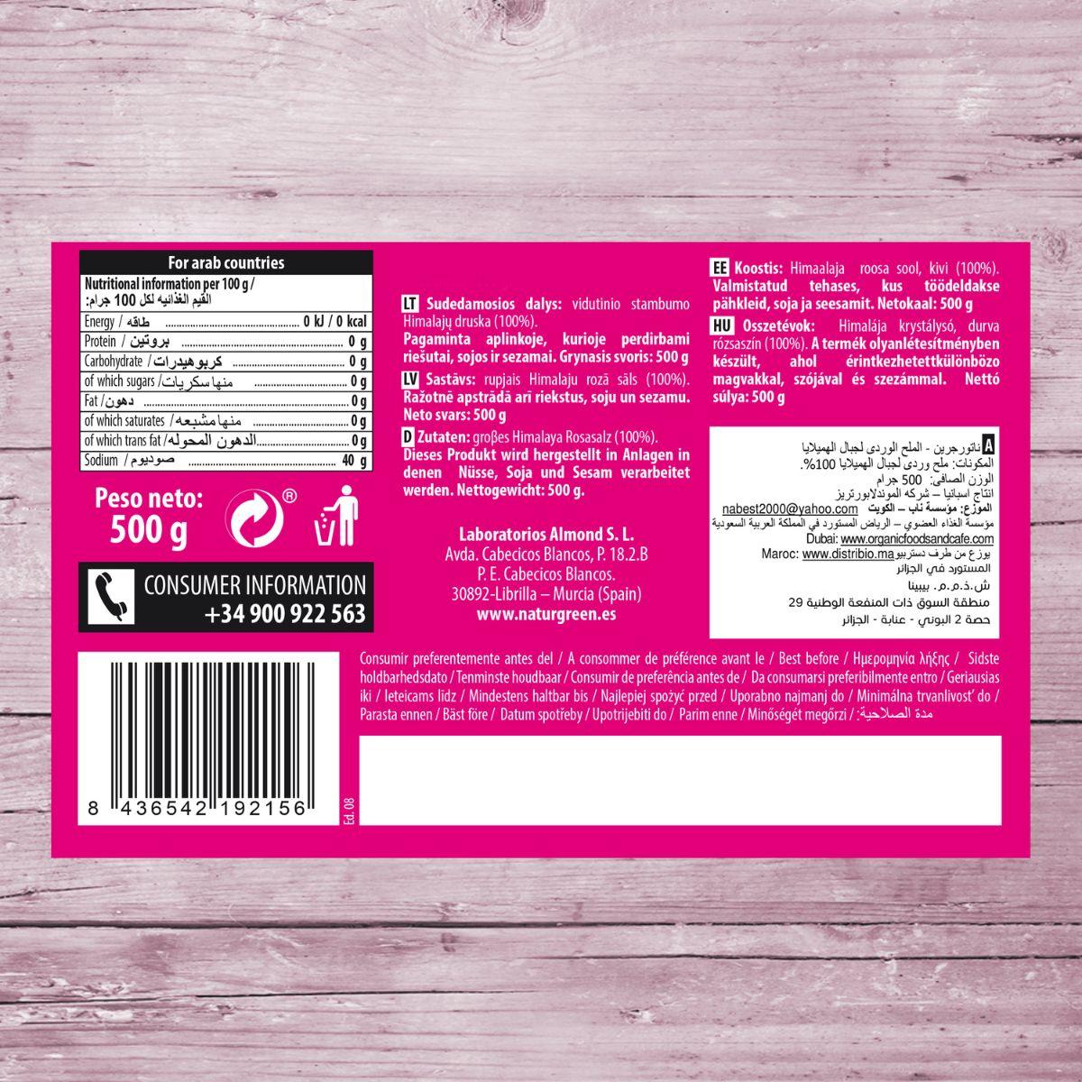 Toda la información sobre "Sal rosa del Himalaya gruesa Naturgreen 500 g"