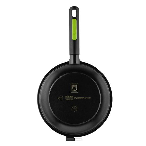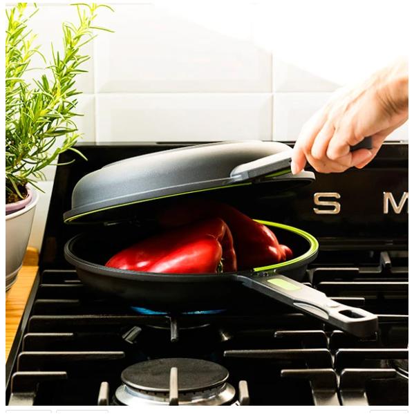 - Cocina asado con efecto horno: gracias a su junta aislante junto con el imán de su mango hace que se cree dentro de la sartén un efecto horno completamente uniforme