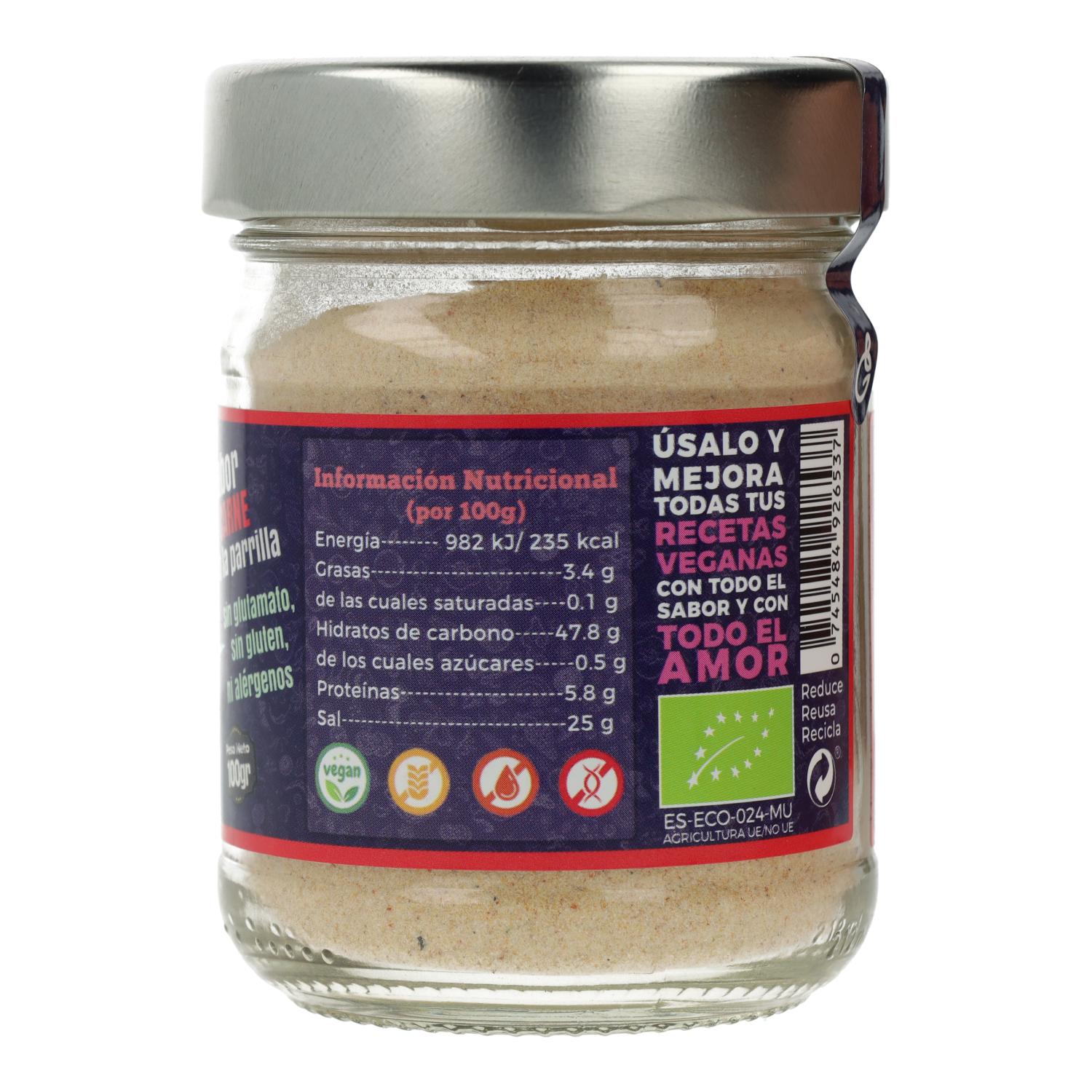 Preparado ecológico para caldo sabor Carne a la parrilla. Da todo el sabor a tus recetas con este preparado para caldo, sin gluten, sin alérgenos y totalmente vegano.
