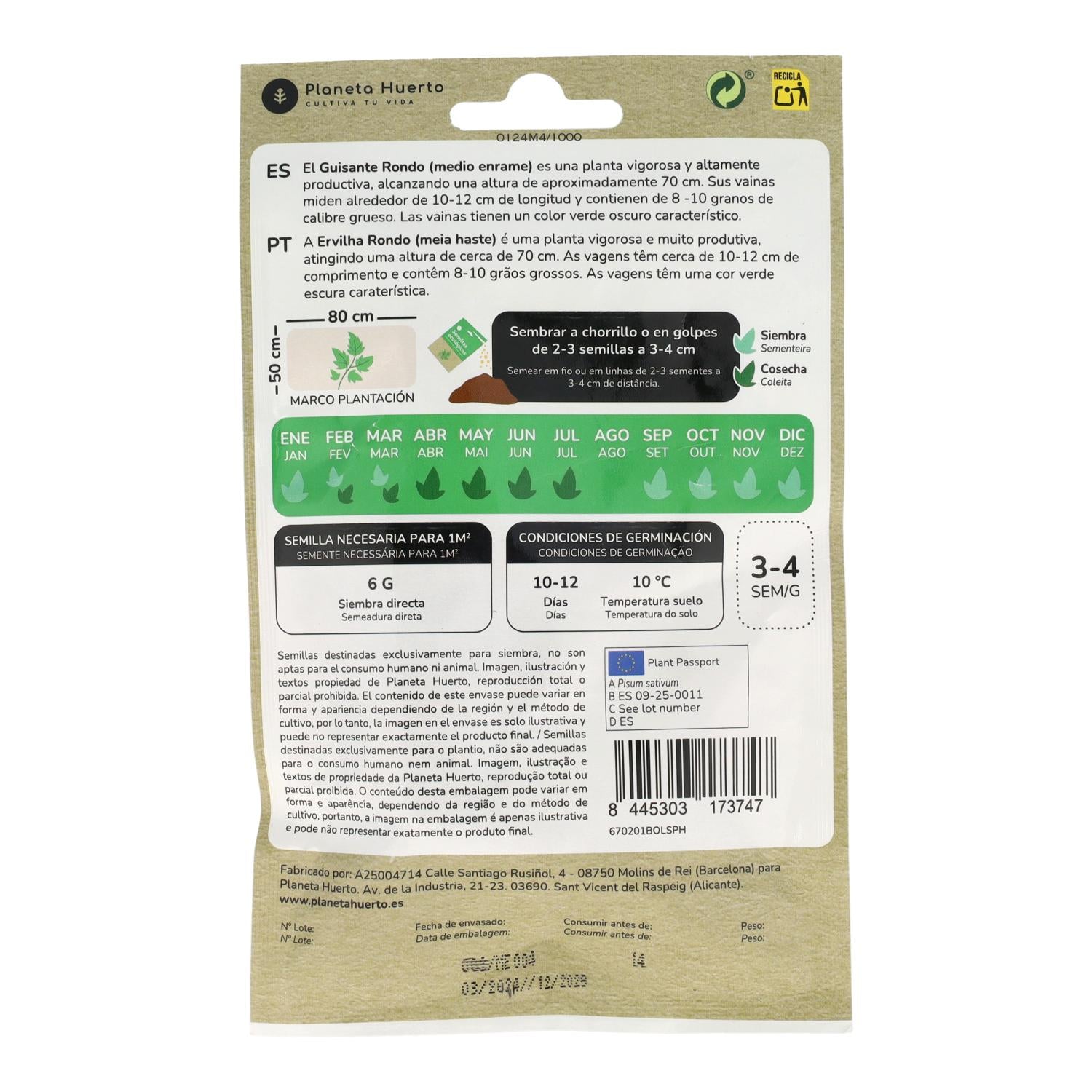 Toda la información sobre "Semillas de Guisante rondo 1/2 enrame ecológicas Planeta Huerto"