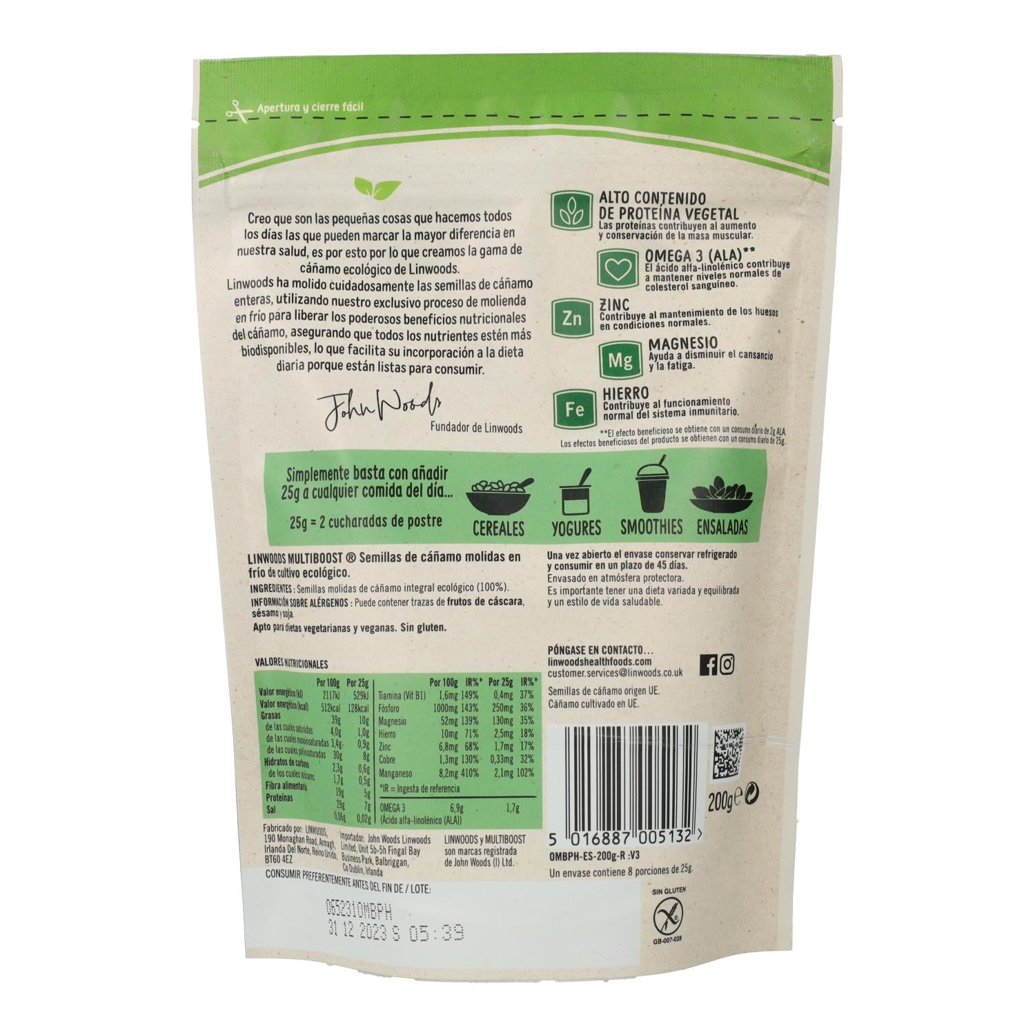 Semillas molidas de cáñamo bio Linwoods 200 g