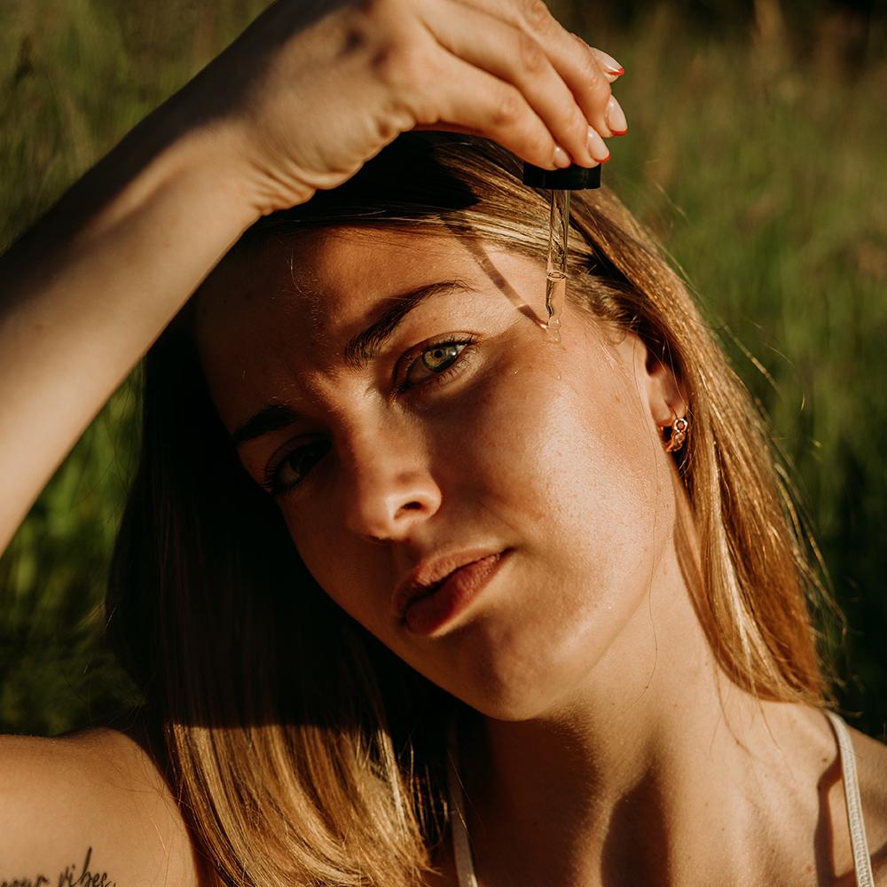 - Aplica 3-4 gotas de sérum. Después, masajea cara y cuello suavemente hasta su completa absorción.