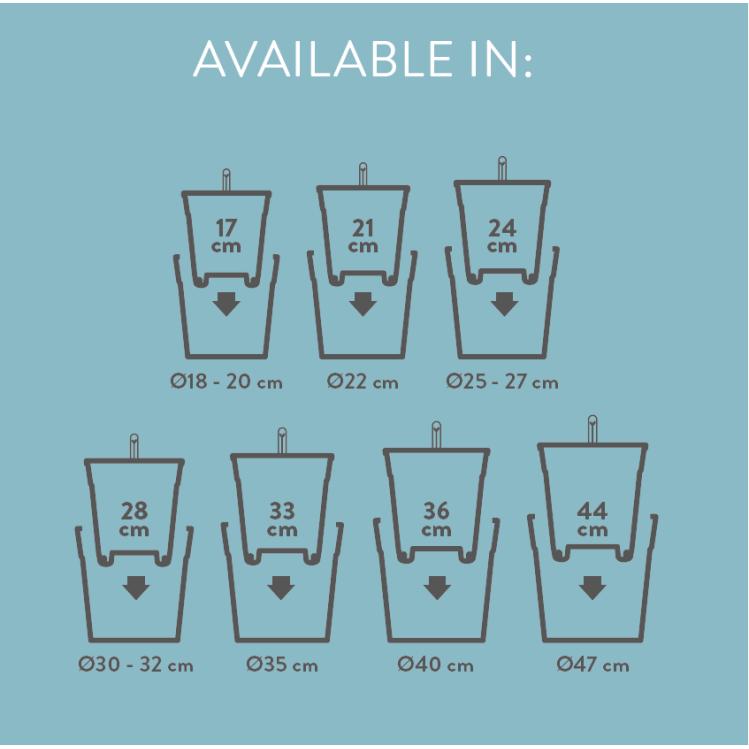 - ⌀ 24 x H 22 cm: Válido para macetas de ⌀ 25 - 27 cm