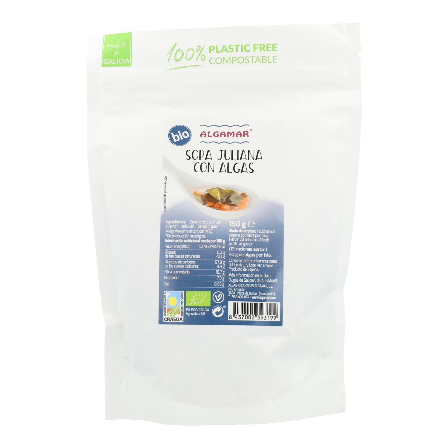 Sopa Juliana con Alga Wakame de producción ecológica.
