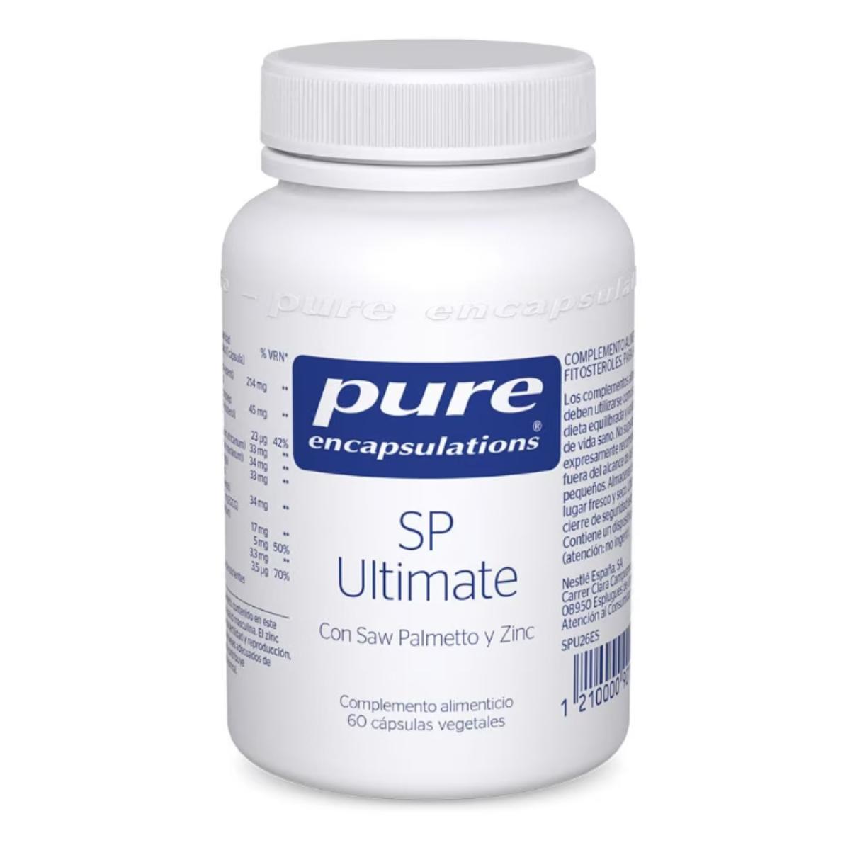Pure® Encapsulations SP Ultimate es una combinación de minerales antioxidantes y extractos herbales como Serenoa repens y Pygeum africanum de uso en la salud masculina.